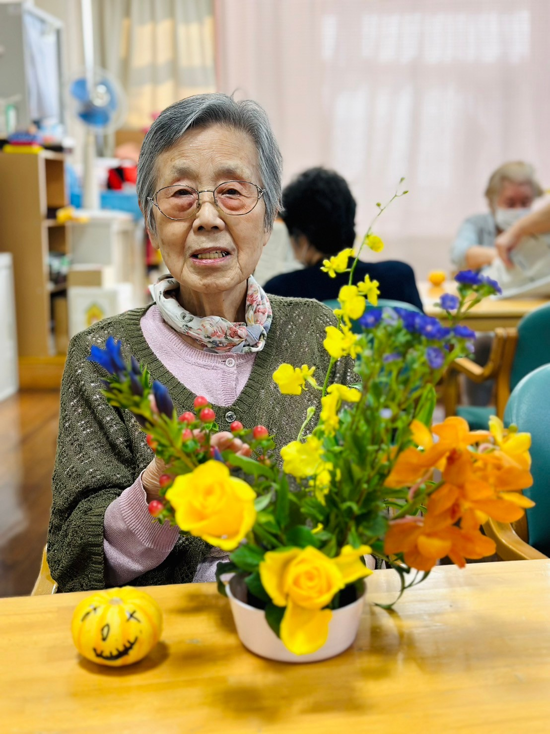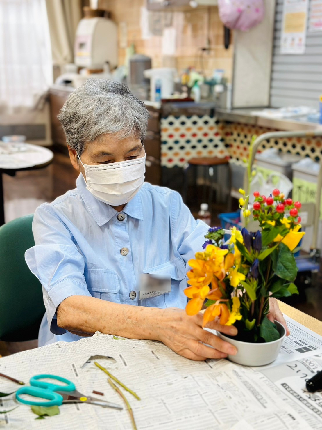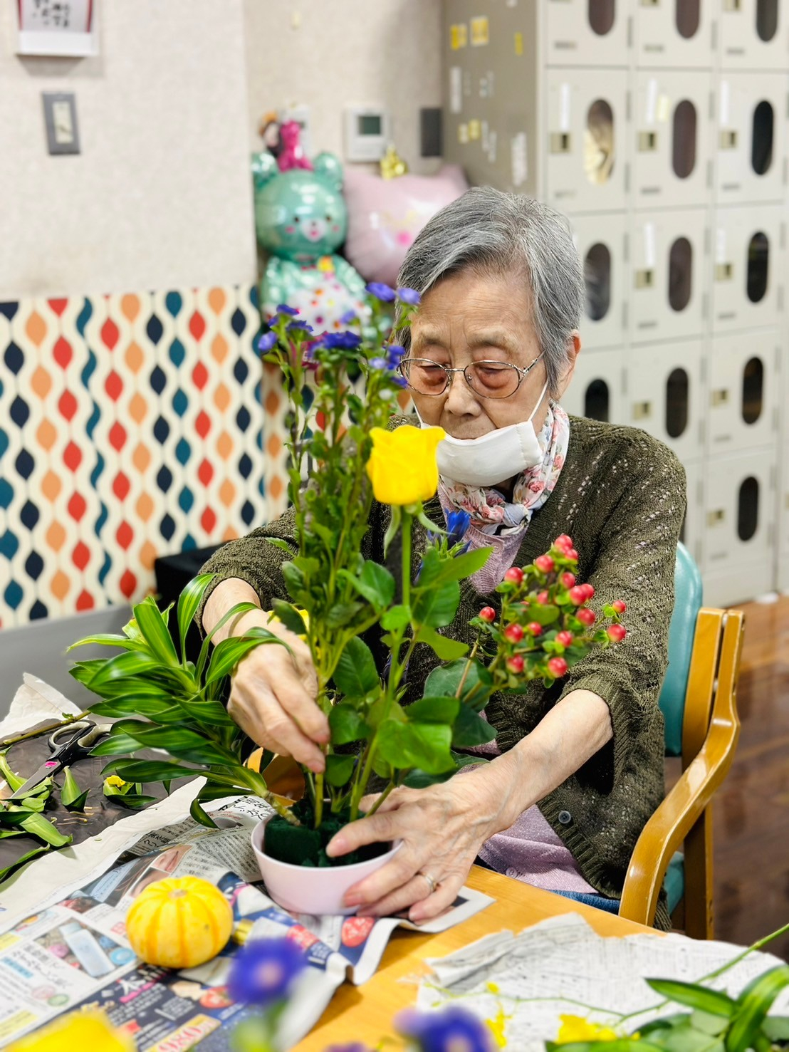 先日、先生をお招きし、フラワーアレンジメントを行いました(^^♪