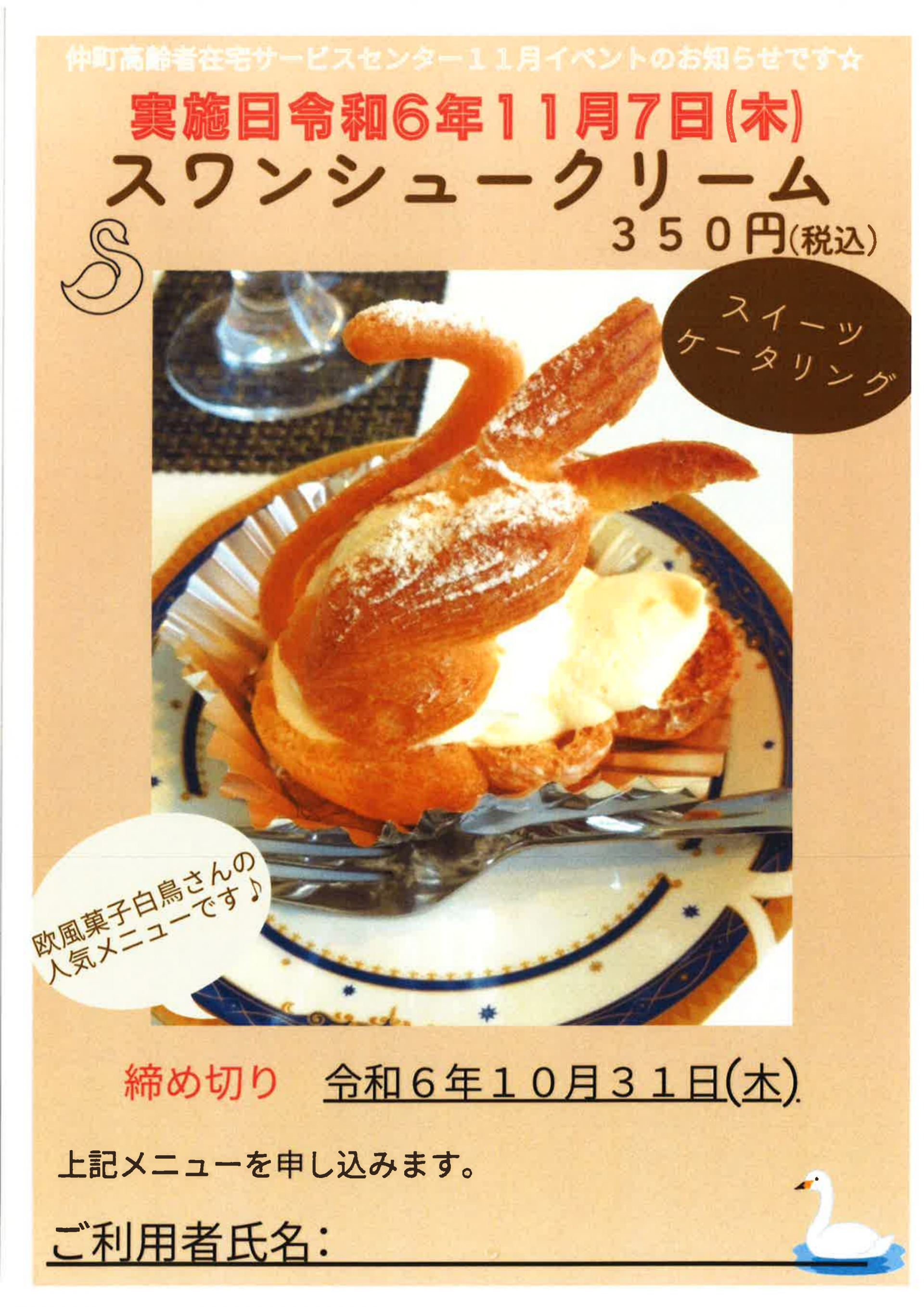 【仲町在セン】11月スイーツケータリングのお知らせです☆
