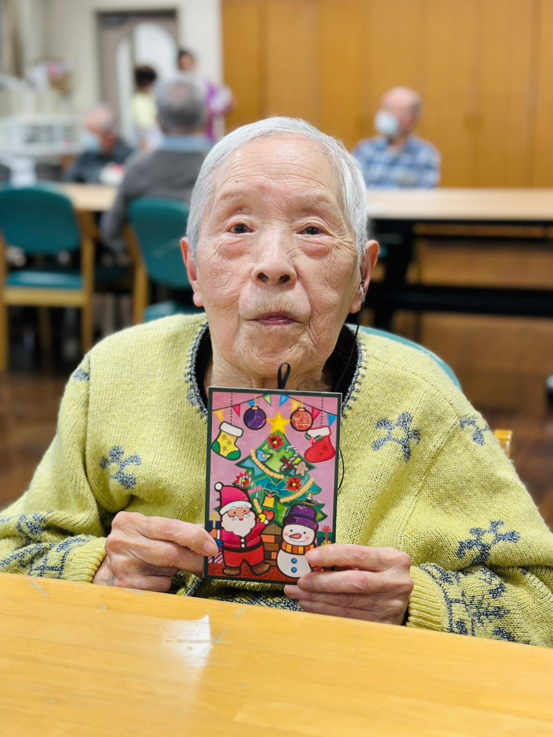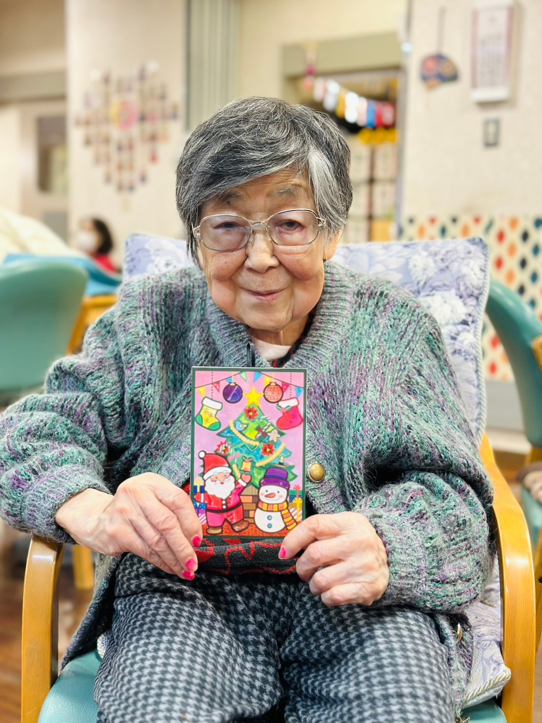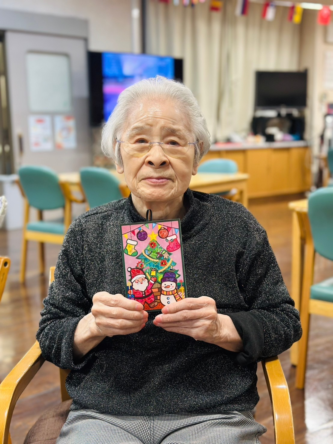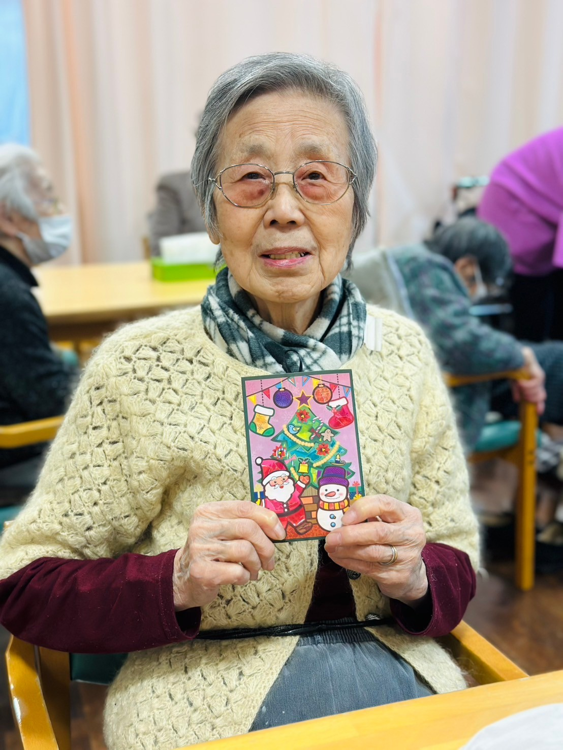 今回はシールちぎりアートを行い「クリスマスパーティー」の絵柄のカードを作成しました(^^)v