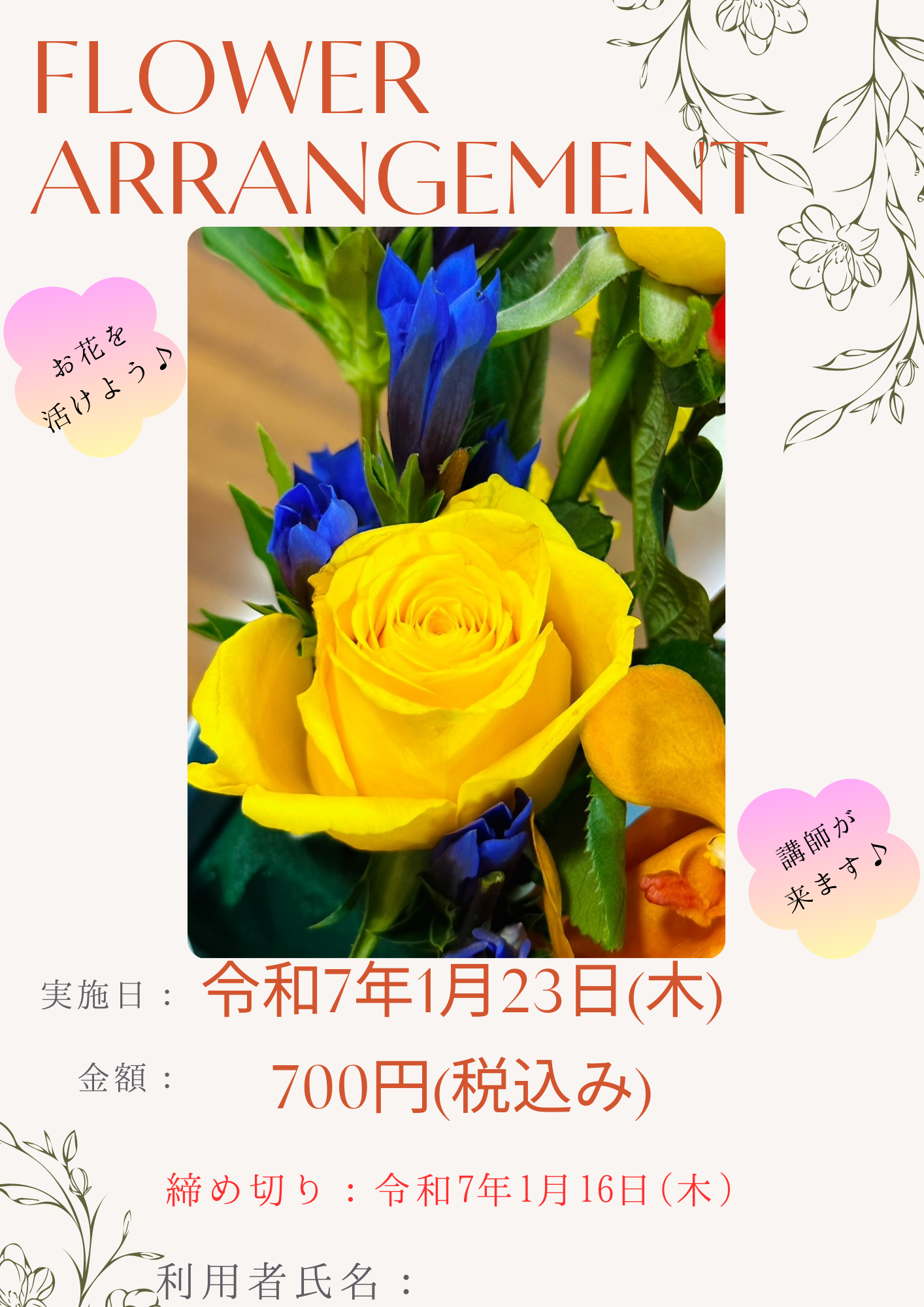 【仲町在セン】1月フラワーアレンジメントのお知らせです☆