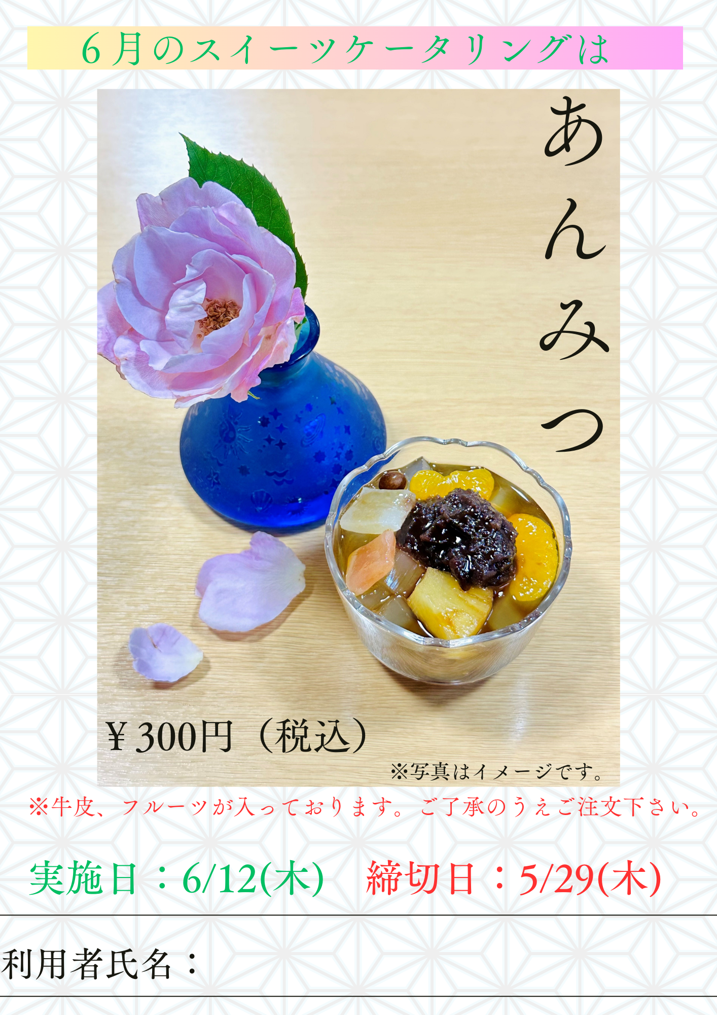 今回は、仲町在セン6月のスイーツケータリングのお知らせです☆