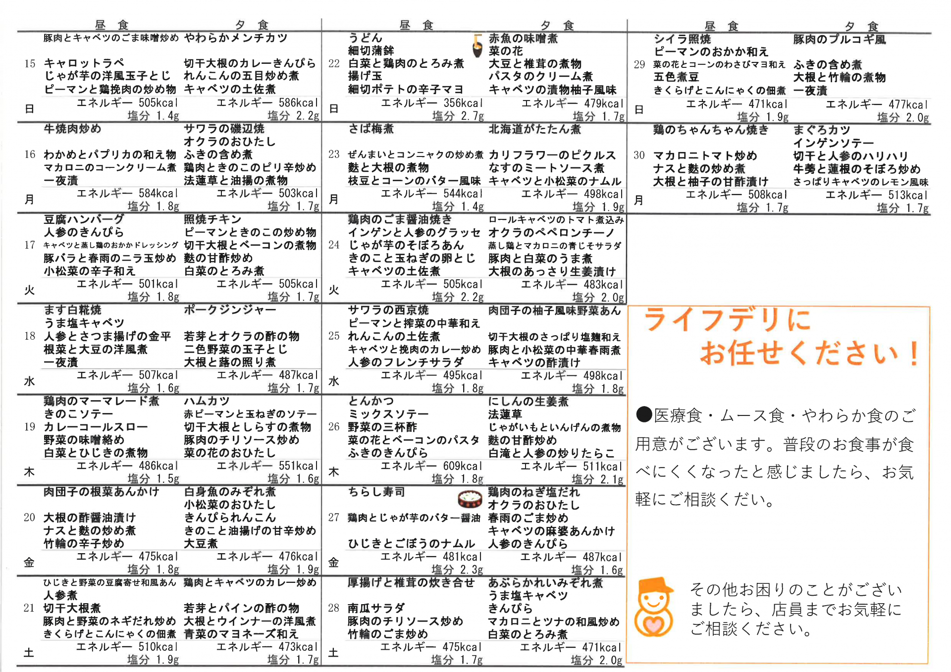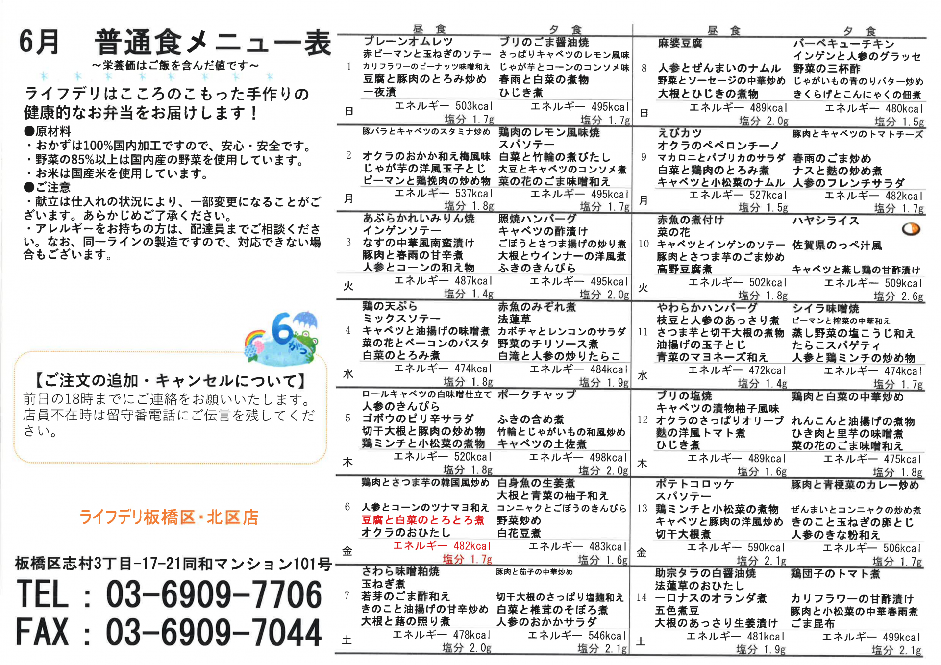 仲町在セン、6月の献立表を本日よりご利用者様へお配りしております!