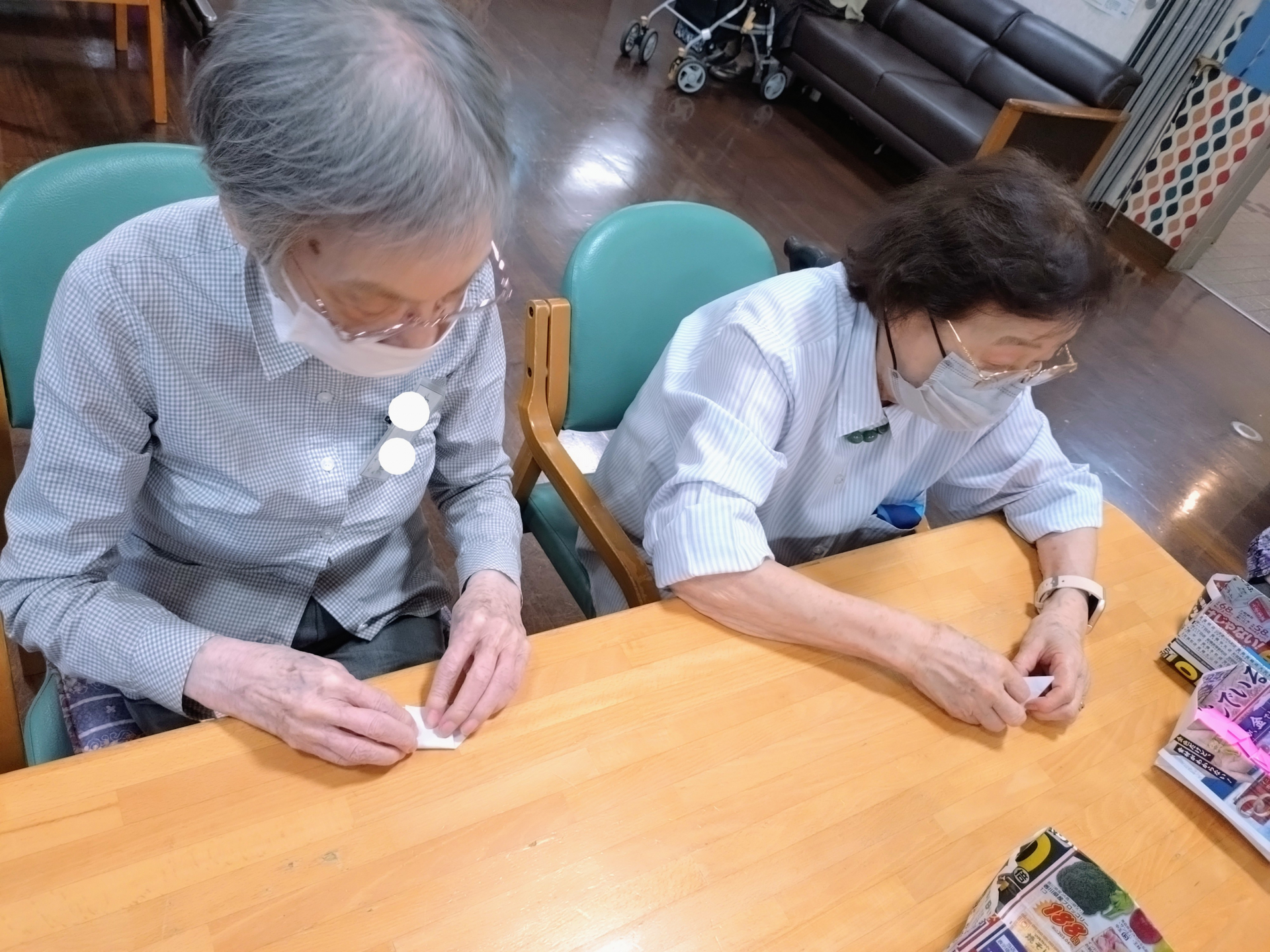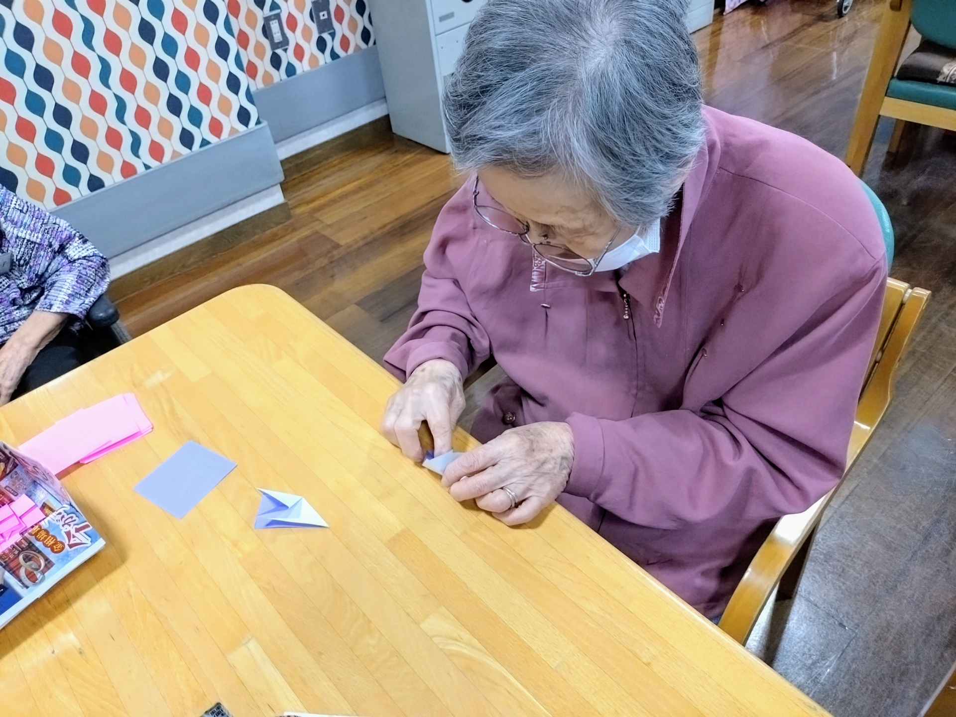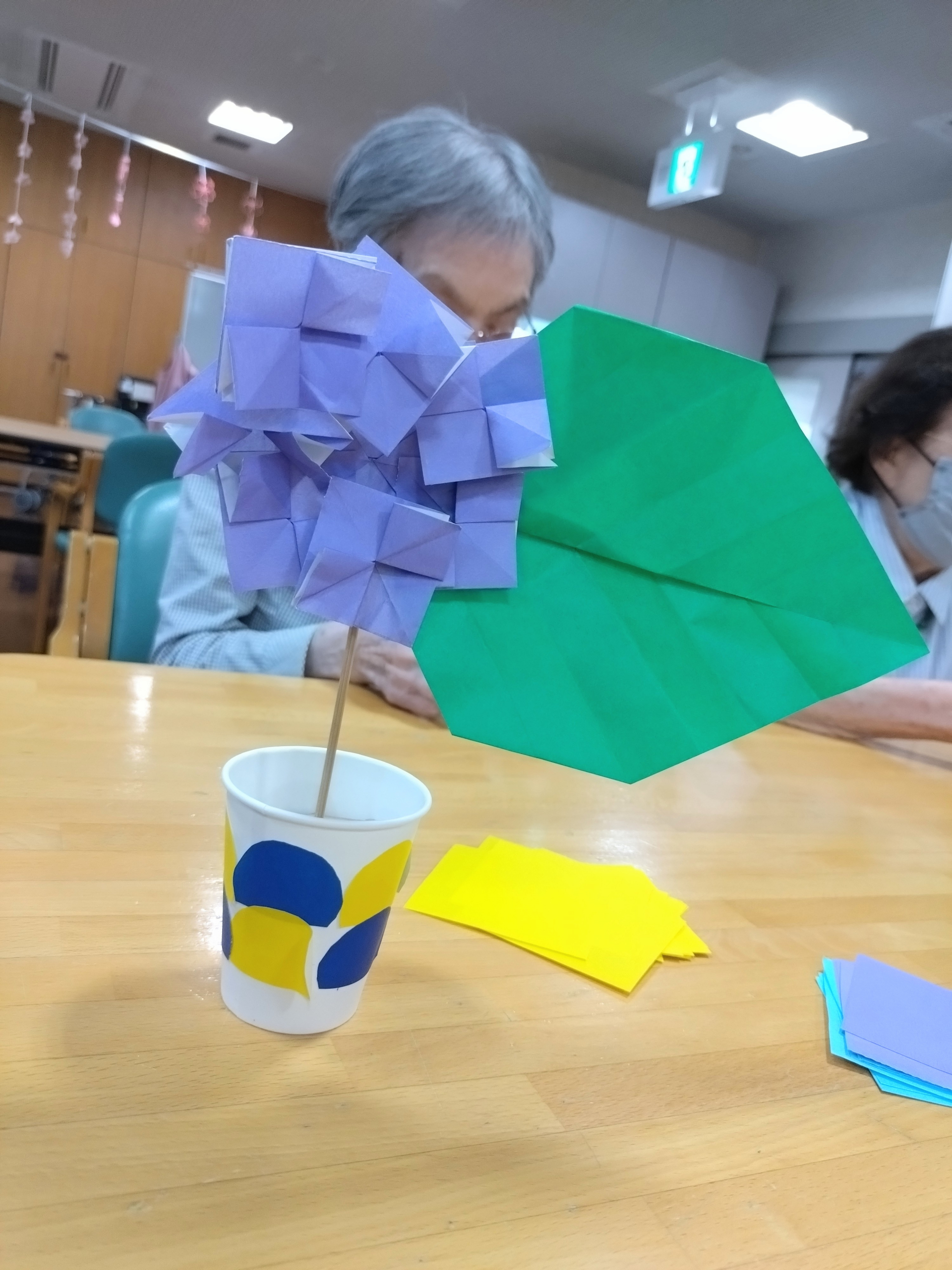仲町在センでは現在、この時期にちなんで紫陽花の折り紙飾りを作成中です☆