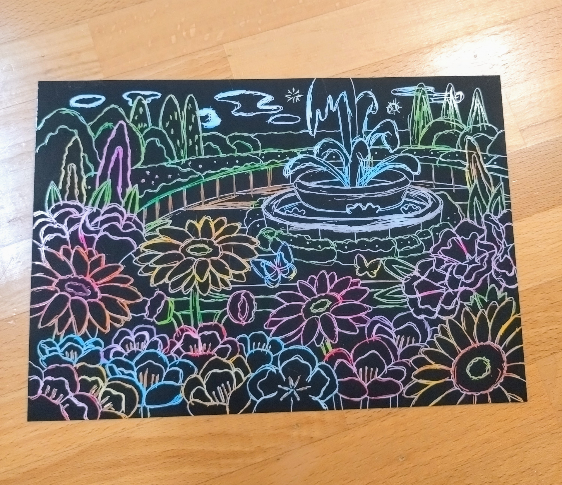 仲町在センでお試しでご用意した「スクラッチアートシート」を