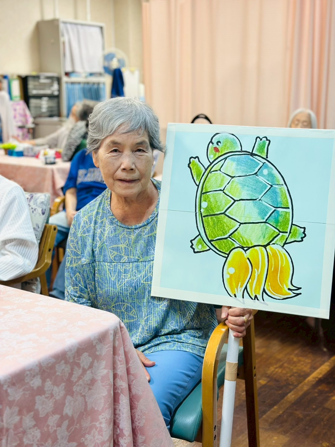 今回は敬老会の続きの記事で、職員手作りの鶴亀パネルと