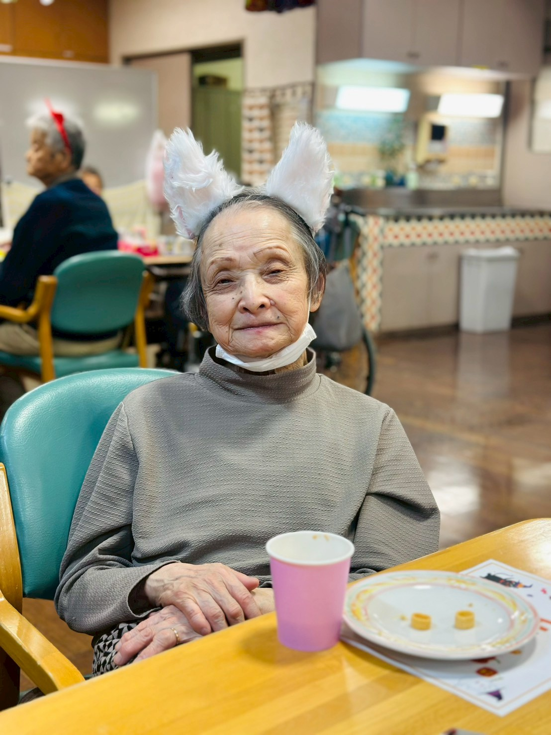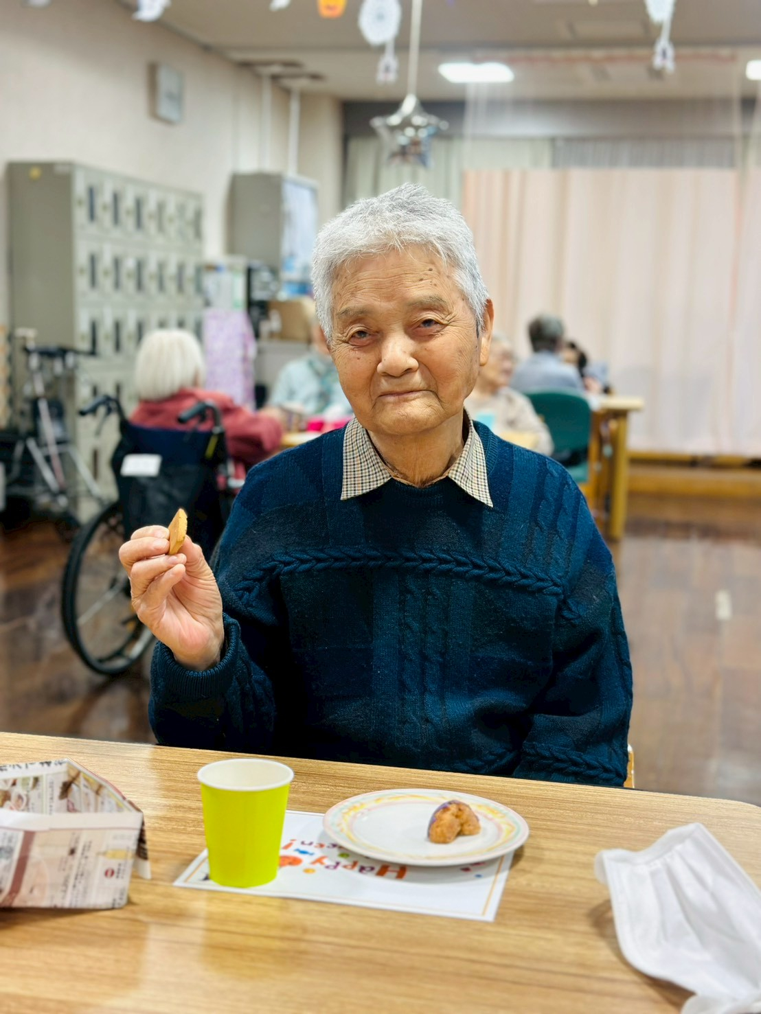 配られたお菓子を前にした皆さんの笑顔が楽しいです♪
