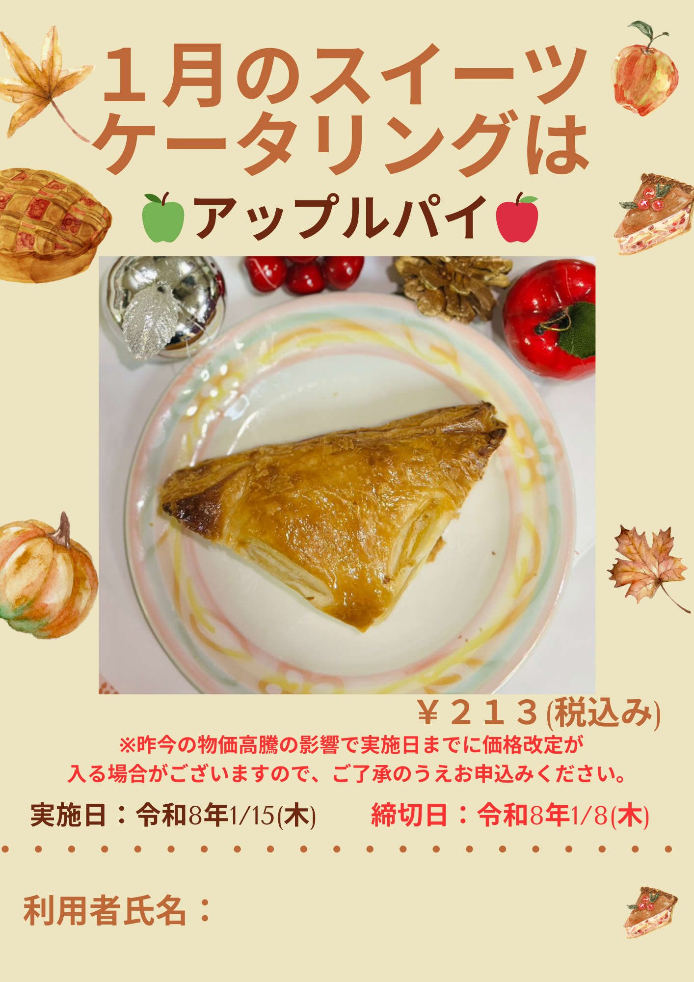 【仲町在セン】1月スイーツケータリングのお知らせ☆