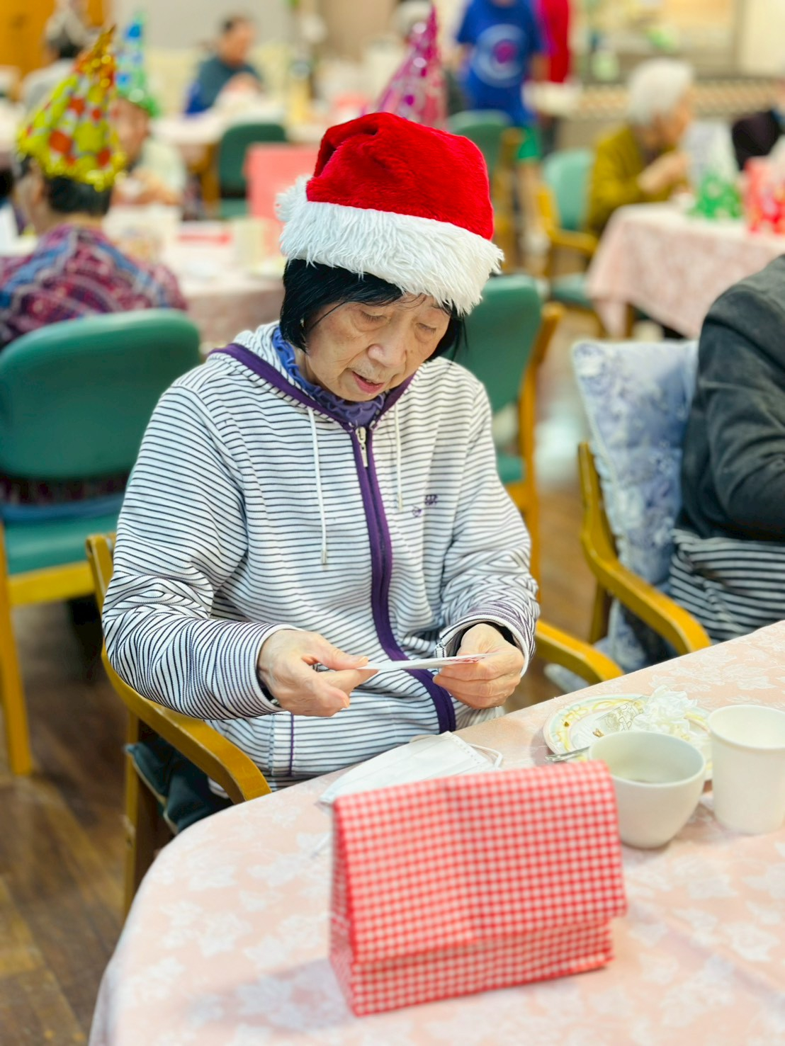クリスマスカードに書かれているメッセージを読まれているS様。