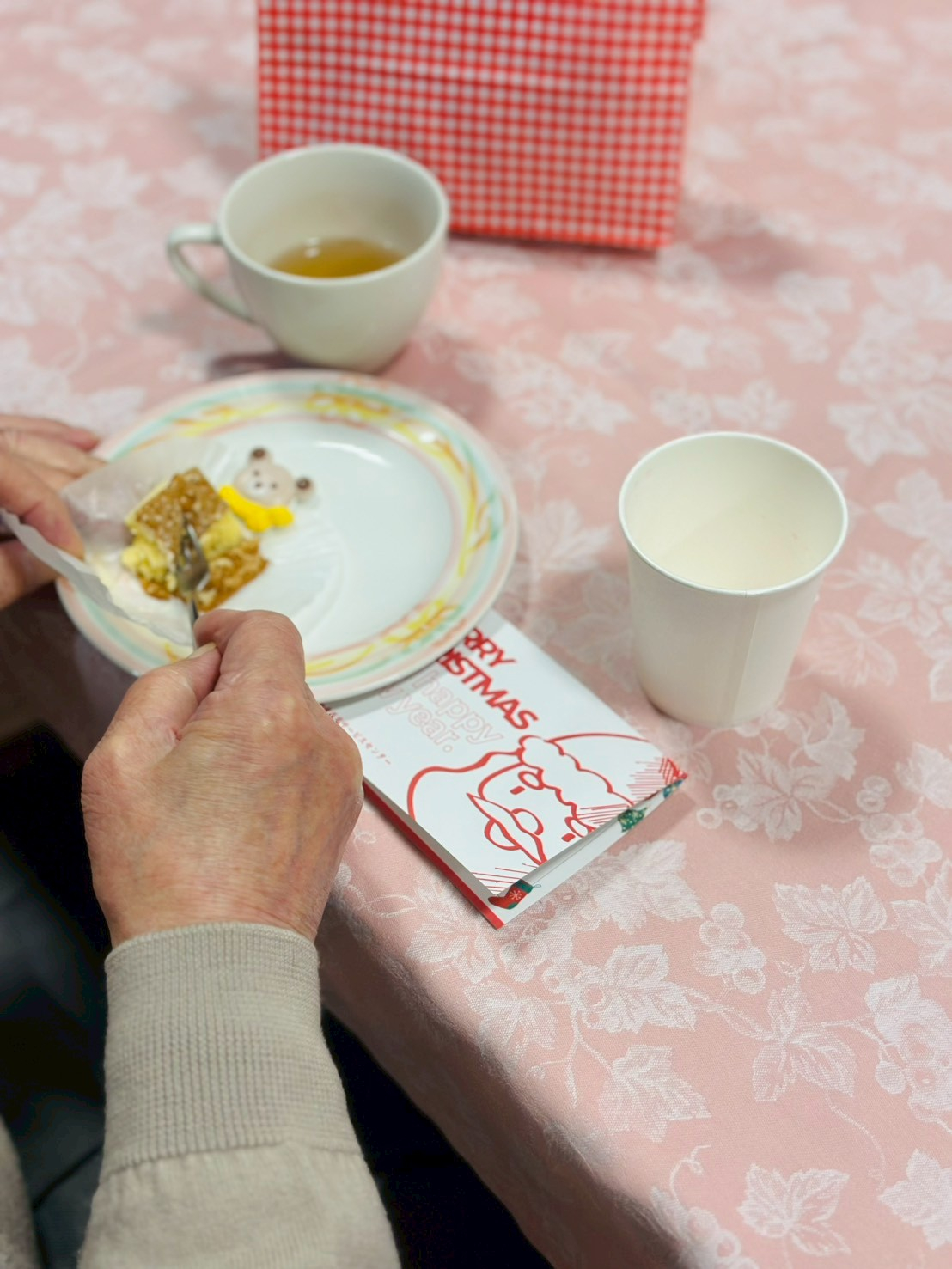 シャンメリーで乾杯後は、ケーキと紅茶で楽しんでいただきました。
