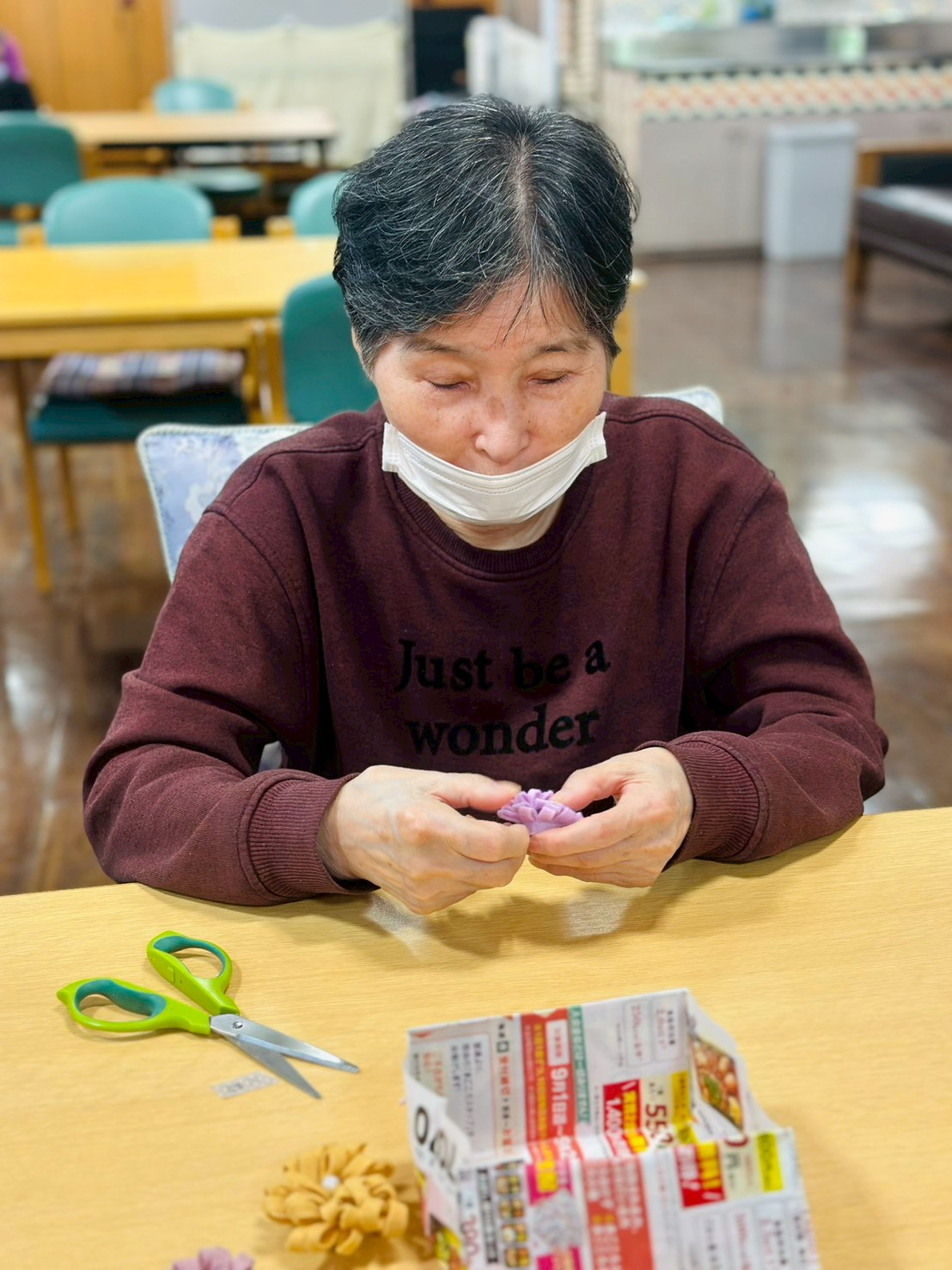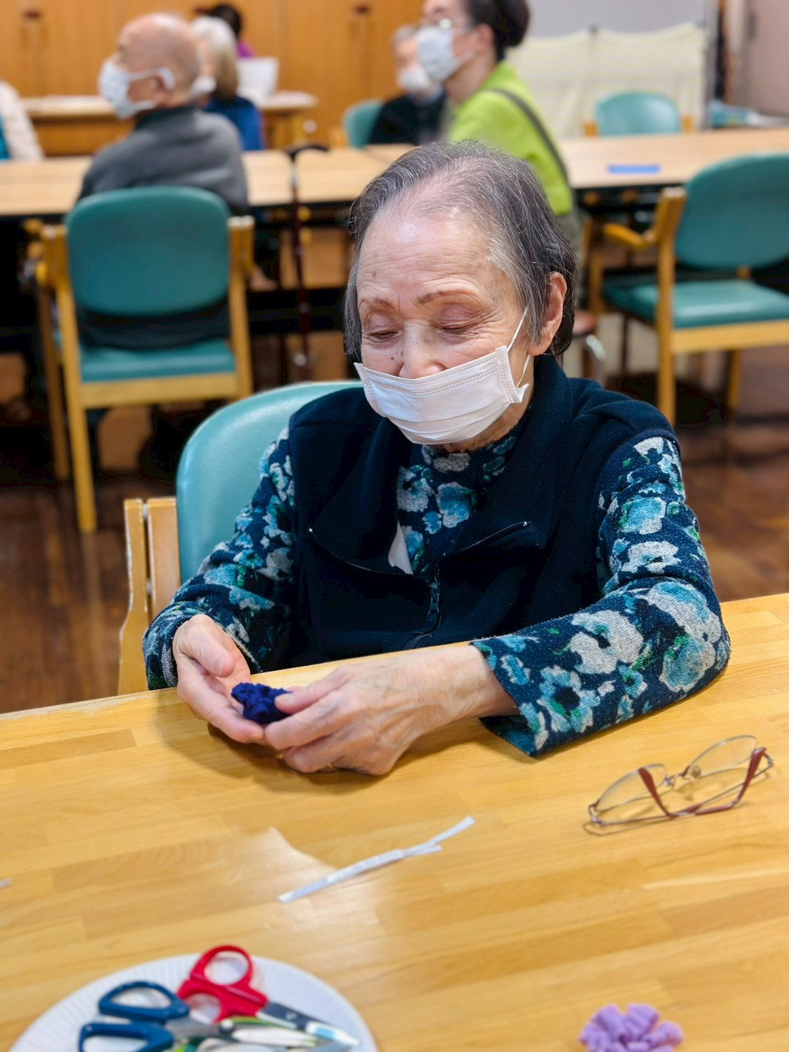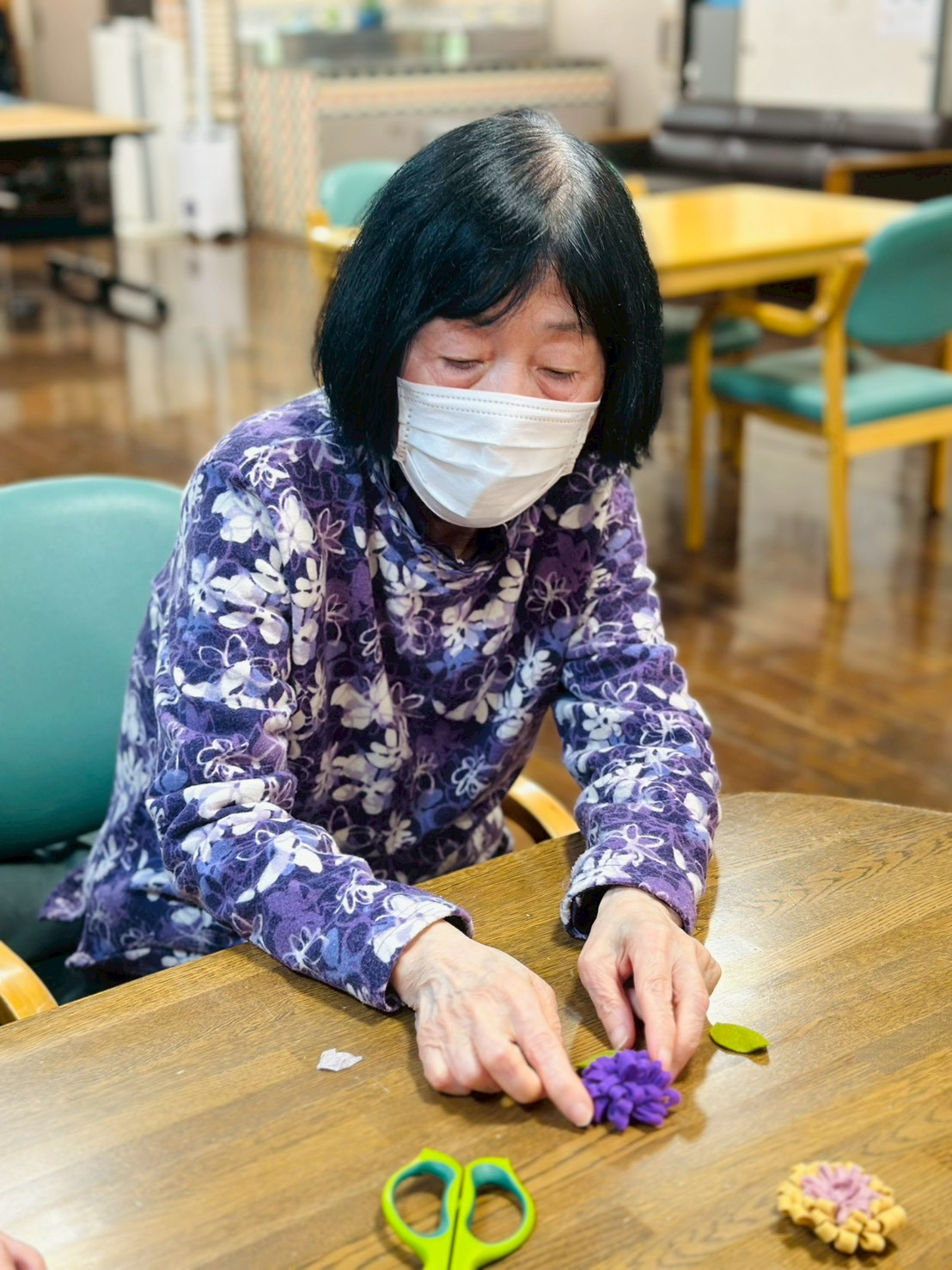 本日は1月の手工芸(フエルトコサージュ作り♪)のお写真です♪