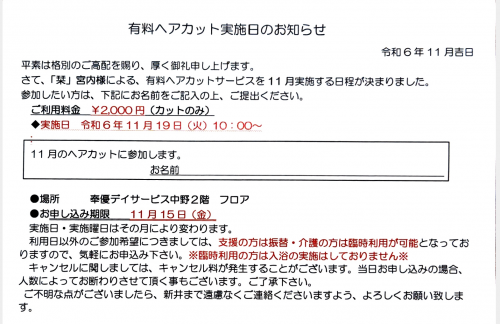 2025.01.04 【中野デイ】謹賀新年! 活動報告 2024.12.28 【中野デイ】最終日! 活動報告 2024.12.25 【中野デイ】Xmas会 活動報告 2024.12.20 【中野デイ】イケメンブラザース♪ 活動報告 2024.12.18 【中野デイ】門松作り 活動報告 2024.12.16 【中野デイ】フェスタ落語会 活動報告 2024.12.13 【中野デイ】サックス演奏会♪ 活動報告 2024.12.12 【中野デイ】ピアノ&バイオリンコラボ演奏会♪ 活動報告 2024.12.11 【中野デイ】外出イベント!! 活動報告 2024.12.10 【中野デイ】デザートバイキング 活動報告 2024.12.07 【中野デイ】クリスマス飾り! 活動報告 2024.12.05 【中野デイ】ターゲットボール 活動報告 2024.12.02 【中野デイ】イベントのお知らせ ③ 活動報告 2024.12.02 【中野デイ】イベントのお知らせ ② 活動報告 2024.12.02 イベントのお知らせ ① 活動報告 1 … 7 8 9 10 11 … 25