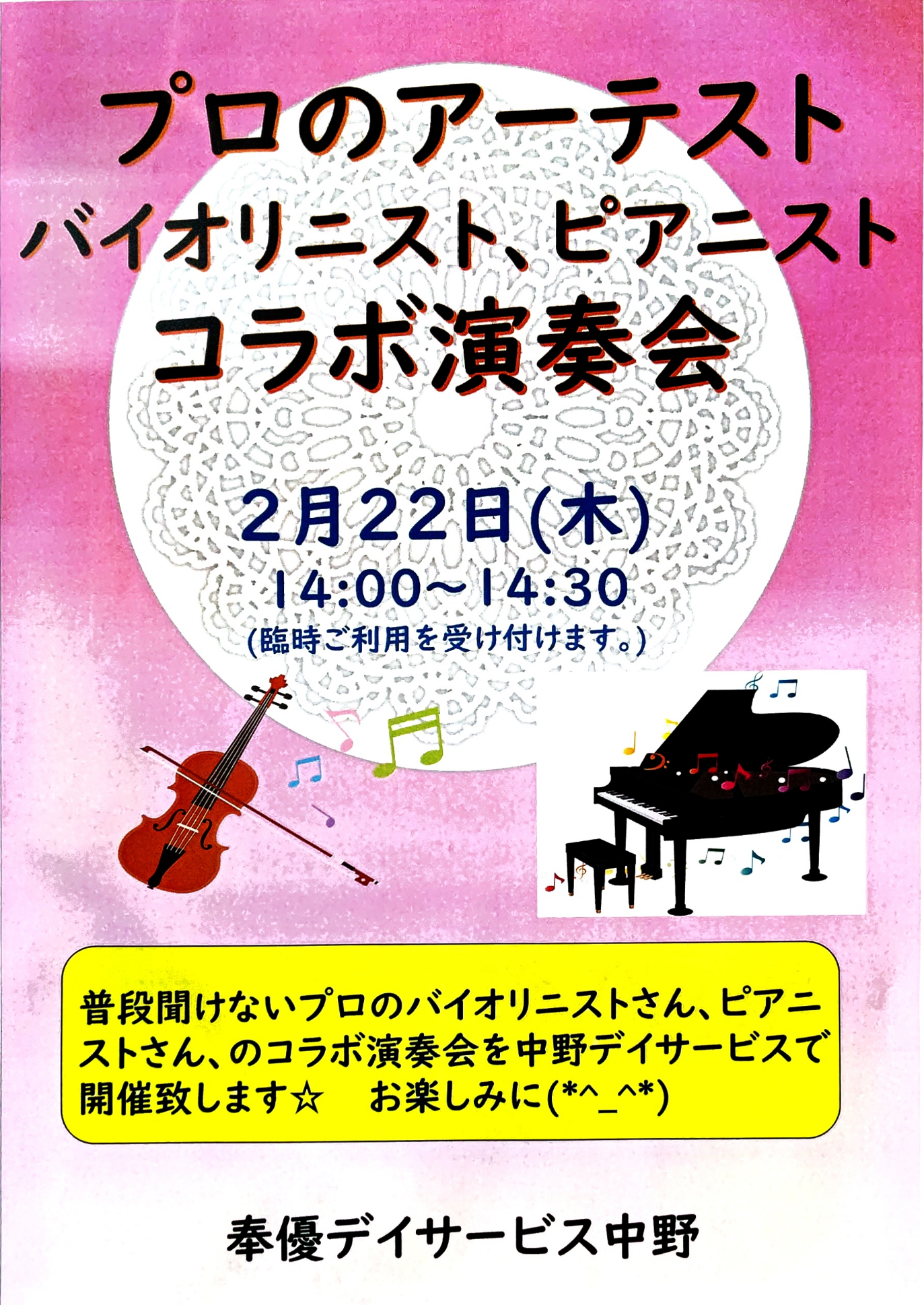 本日はプロのバイオリニストとピアニストによるコラボ演奏会が開催されました。