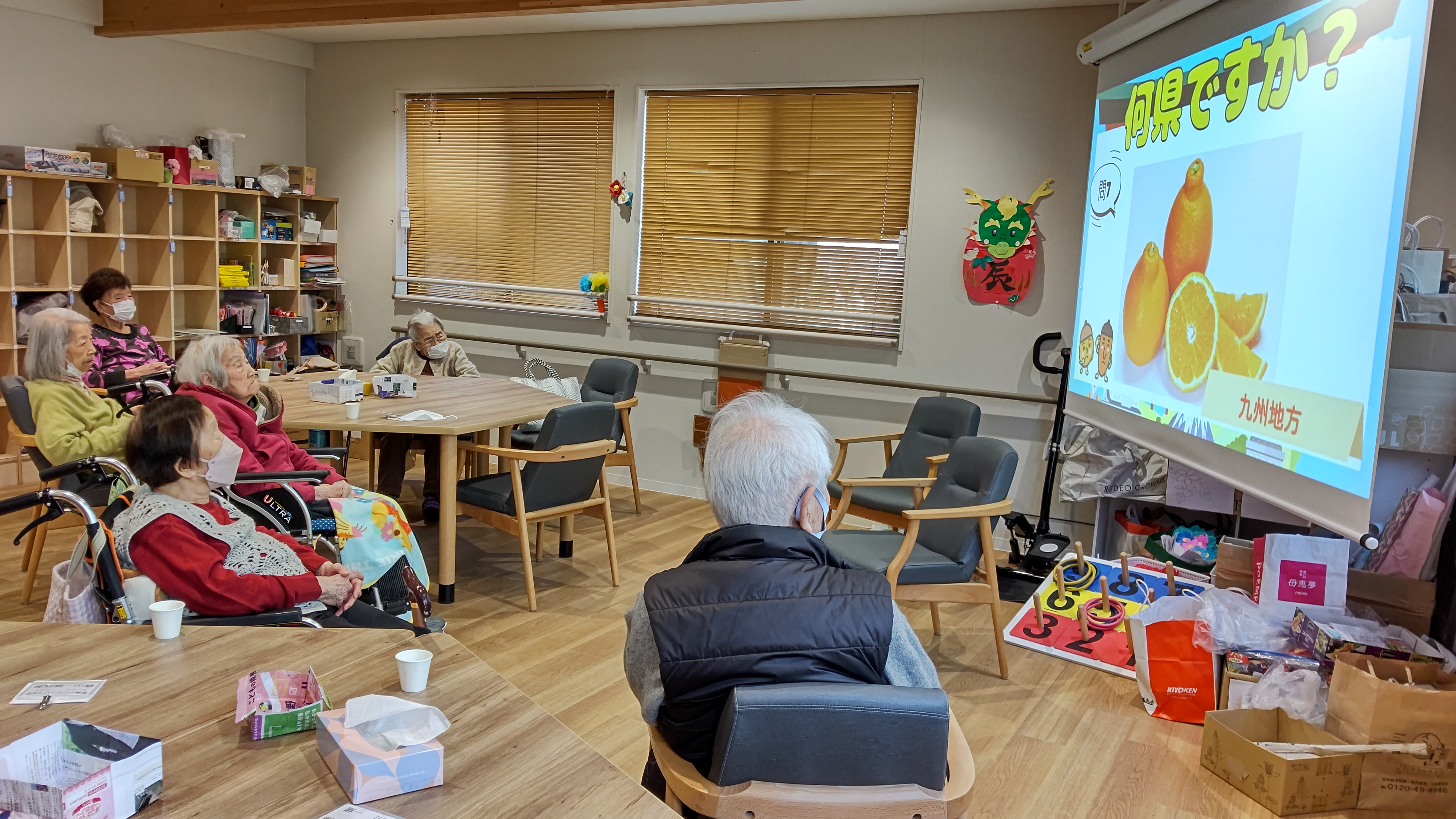 本日は筋力トレではなく、脳トレーニングをプロジェクターを使用して行いました。