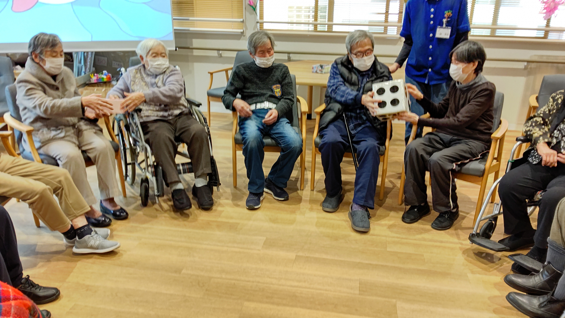 2024.04.11 活動報告 【中野デイ】上肢筋力トレーニング Tweet シェアする 本日の上肢筋力トレーニングは物送りゲームを行いました。 最初は一つからはじまり、、、、、最後はたくさん物送りしてタイムを測りました。 奉優デイサービス中野 前の記事 2024.04.12 活動報告 【中野デイ】ピンポン玉キャッチ!! 次の記事 2024.04.10 活動報告 【中野デイ】コラボ演奏会のお知らせ 一覧へ戻る