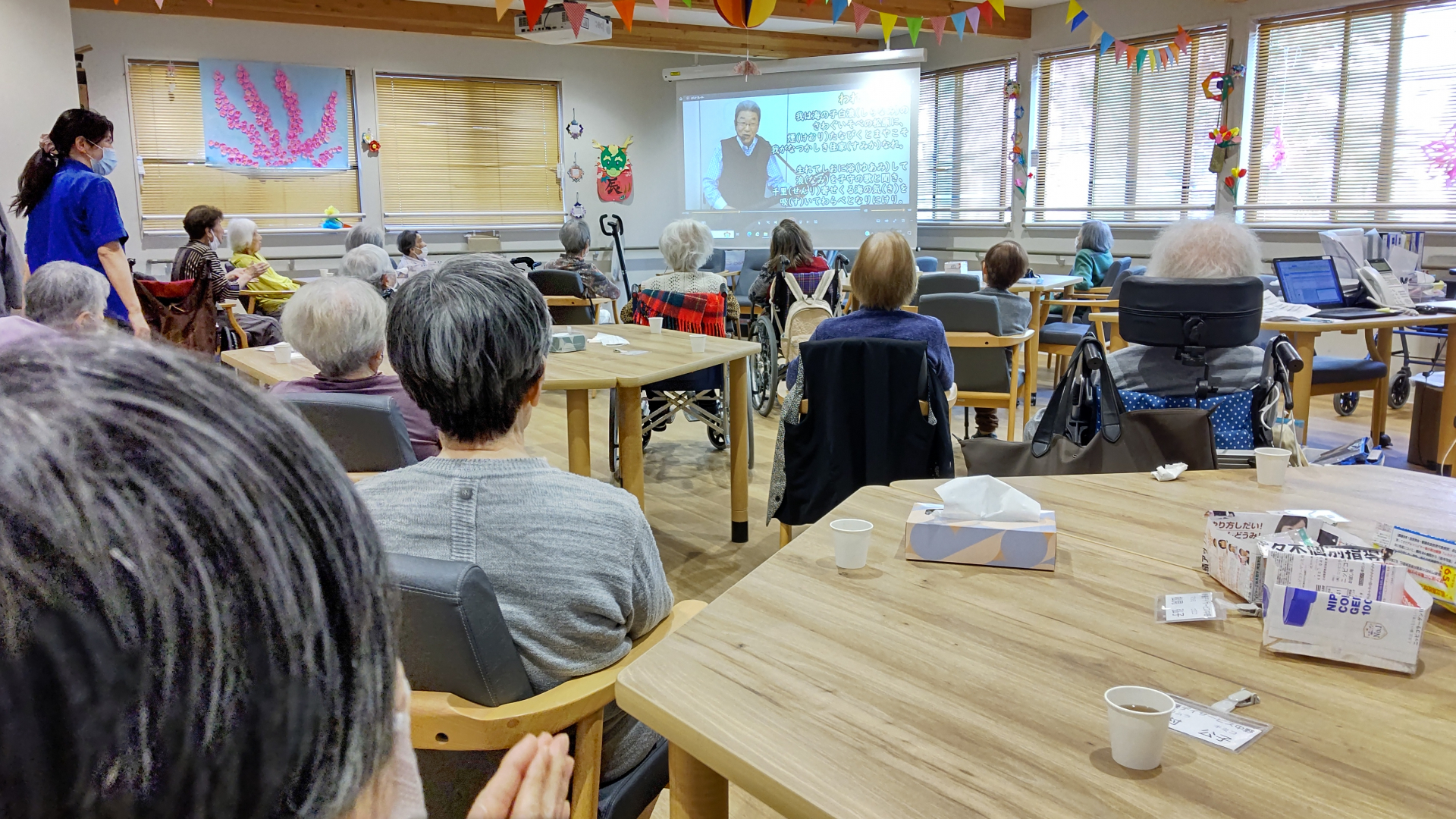 2024.04.15 活動報告 【中野デイ】唄の会 Tweet シェアする 本日は唄の会が開催されました。1Fでは地域の方達の混じってカラオケの披露を。 2Fでは唄のボラさんと一緒に合唱され、ご利用者様もどちらを選択されるか迷われていました。 奉優デイサービス中野 前の記事 2024.04.17 活動報告 【中野デイ】藤 満開!! 次の記事 2024.04.12 活動報告 【中野デイ】ピンポン玉キャッチ!! 一覧へ戻る
