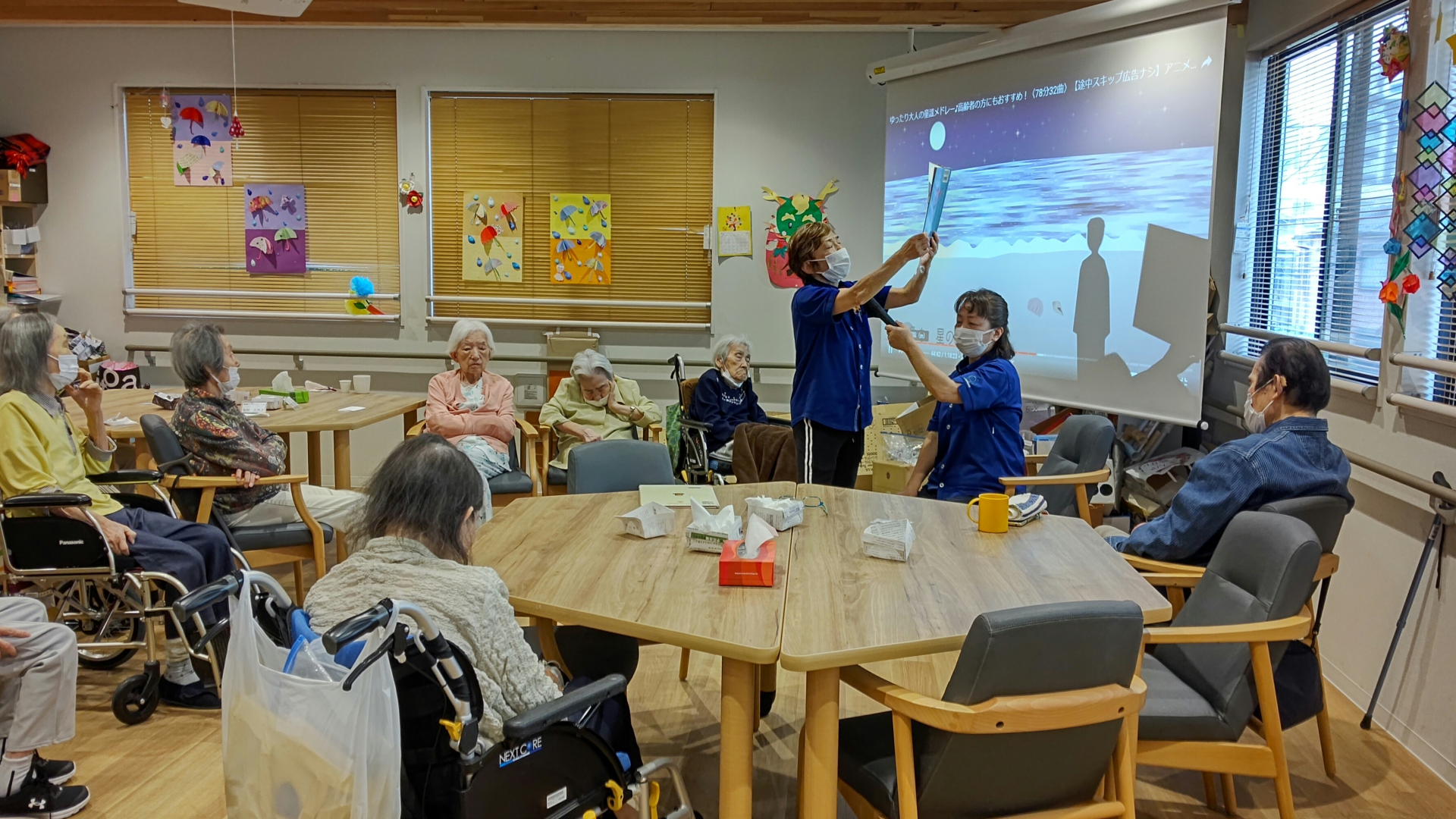 S職員の感情を込めて読み上げる、まさしく朗読にご利用者様は話に引き込まれて、、、。