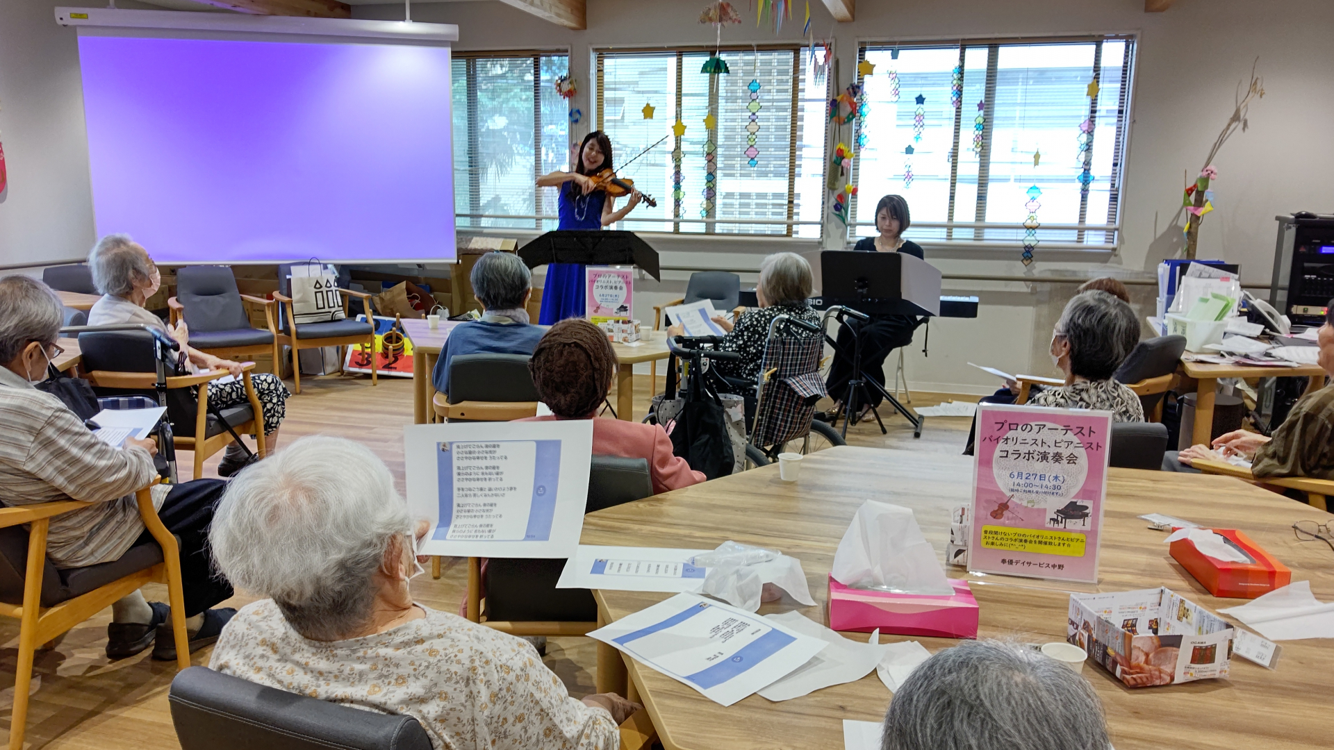 最後のアンコール曲のソロのバイオリンに感激で涙を流されるご利用者様もいました。
