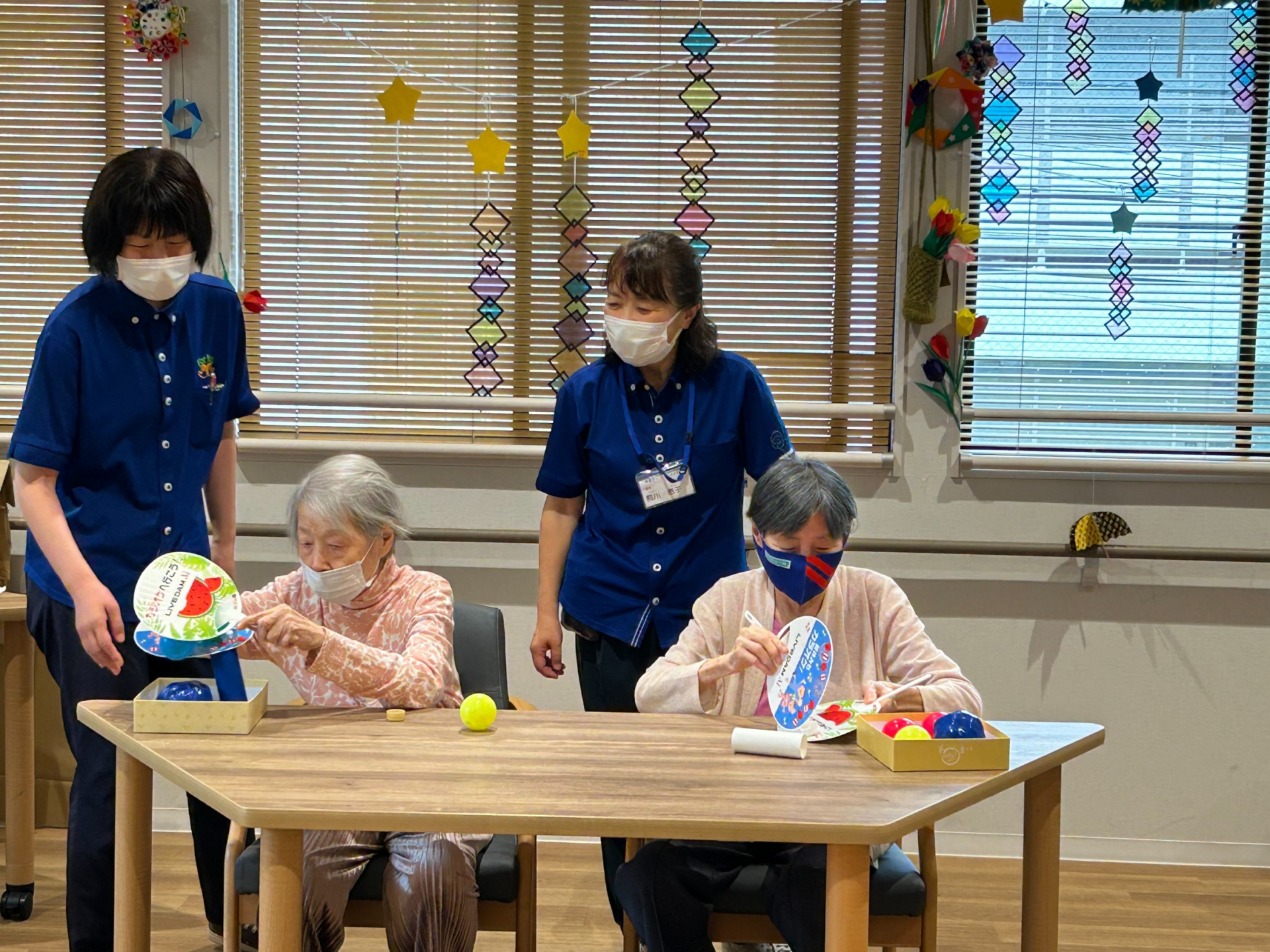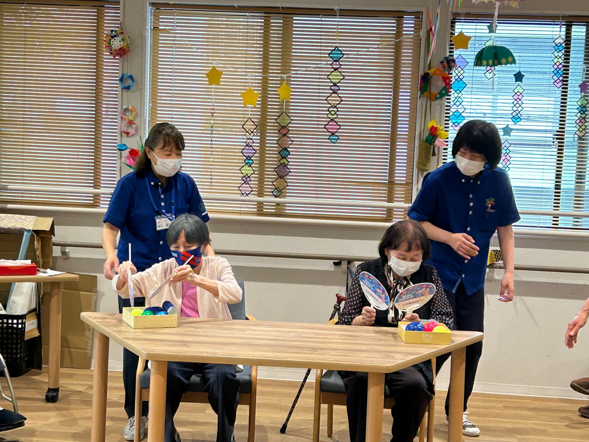 2024.07.03 活動報告 【中野デイ】うちわdeボールゲーム Tweet シェアする 本日の上肢筋力トレーニングは「うちわdeボールゲーム」でした。 箸で豆を掴むゲームの大型版みたいなものですかね。 奉優デイサービス中野 前の記事 2024.07.04 活動報告 【中野デイ】大相撲大会!! 次の記事 2024.07.03 活動報告 【中野デイ】ゴスペル鑑賞♪お知らせ 一覧へ戻る