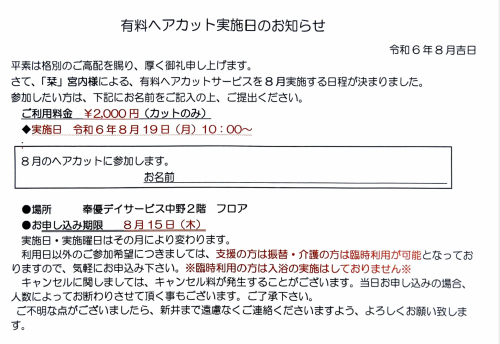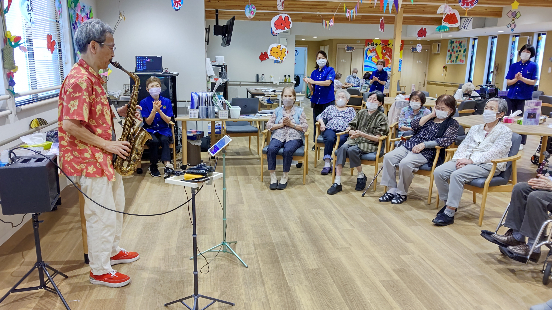 2024.07.31 活動報告 【中野デイ】サックス演奏会♪ Tweet シェアする 本日はサックスの演奏会♪が開催されました。 最初は聞いてるだけのご利用者様も最後は手拍子をしながら口ずさんでおられました。 大盛況の中、また来て頂きたいですね。 奉優デイサービス中野 前の記事 2024.08.01 活動報告 【中野デイ】ヘアカットのお知らせ 次の記事 2024.07.27 活動報告 【中野デイ】カレンダー作り! 一覧へ戻る