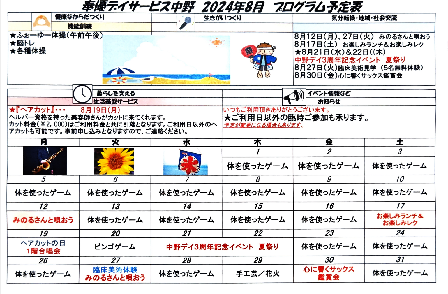 お待たせしました!!8月のプログラム予定表が完成しました。