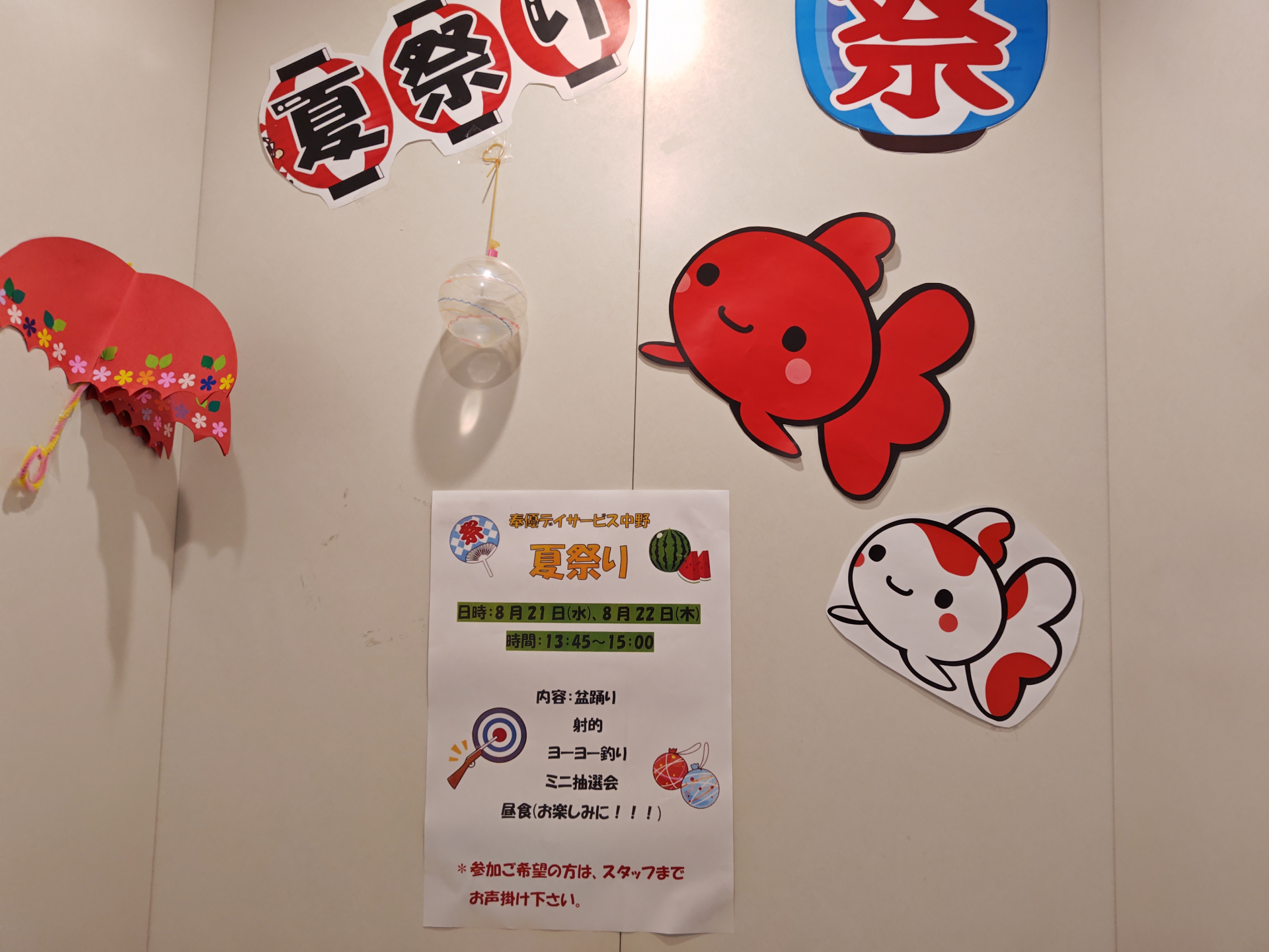8月21日(水)22日(木)の両日、奉優デイサービス中野【夏祭り】が開催されます。