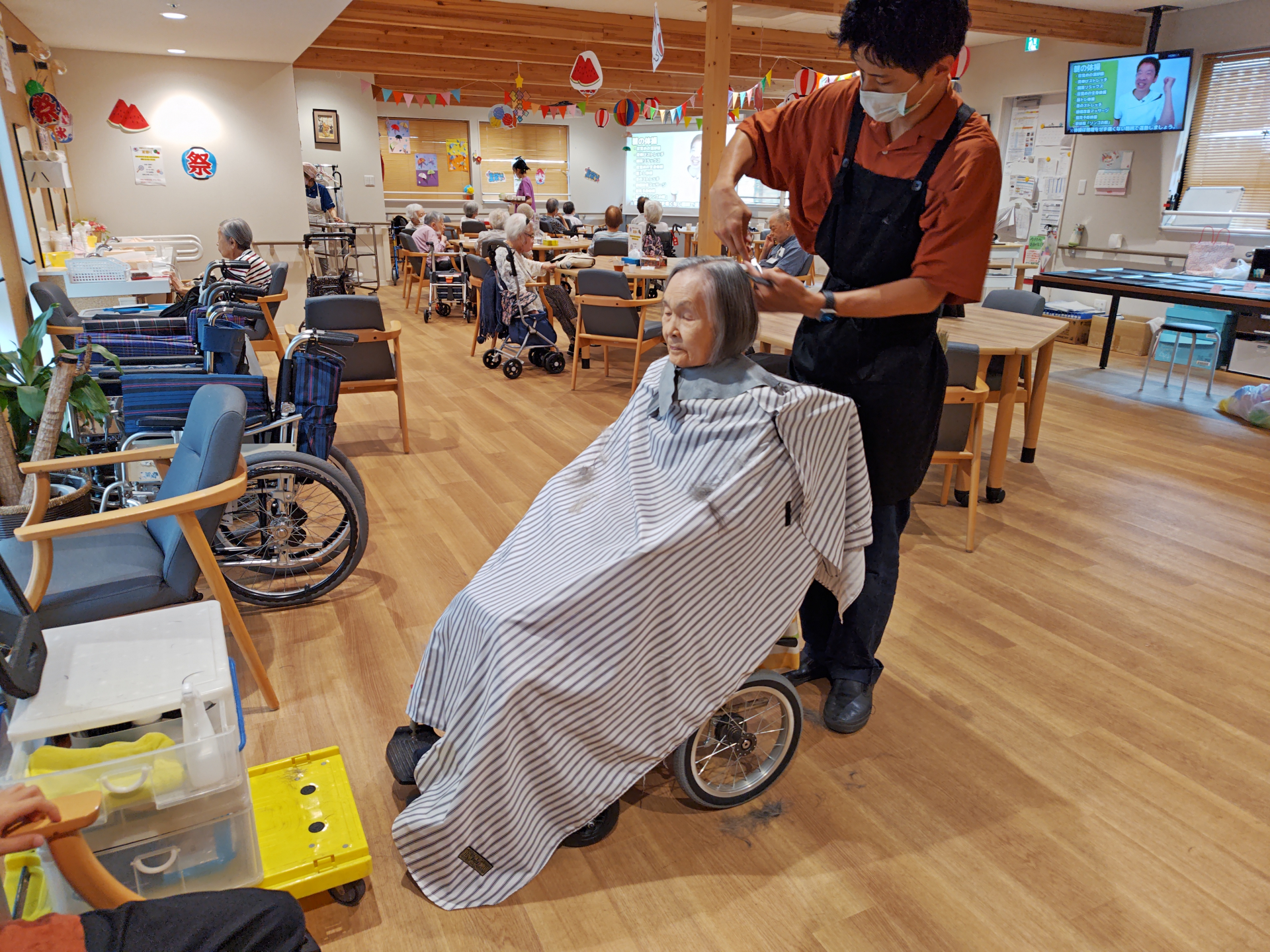 2024.08.19 活動報告 【中野デイ】8月ヘアカット実施 Tweet シェアする 本日は8月のヘアカット実施日でいつもの美容師さんに来て頂きました。 私綺麗になった?とT様より。 もちろんより美しくになられましたね。と 奉優デイサービス中野 前の記事 2024.08.21 活動報告 【中野デイ】夏祭り初日の昼食弁当 次の記事 2024.08.17 活動報告 【中野デイ】お楽しみランチ 一覧へ戻る