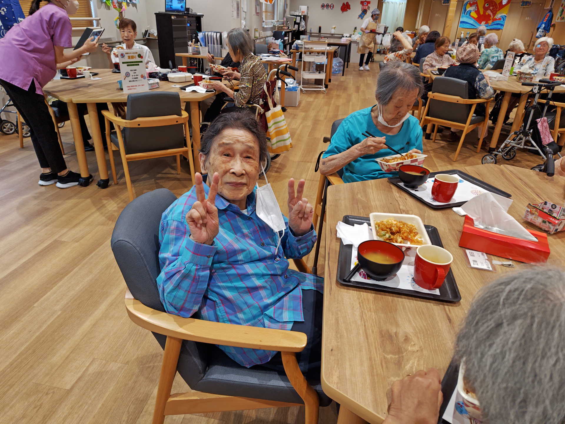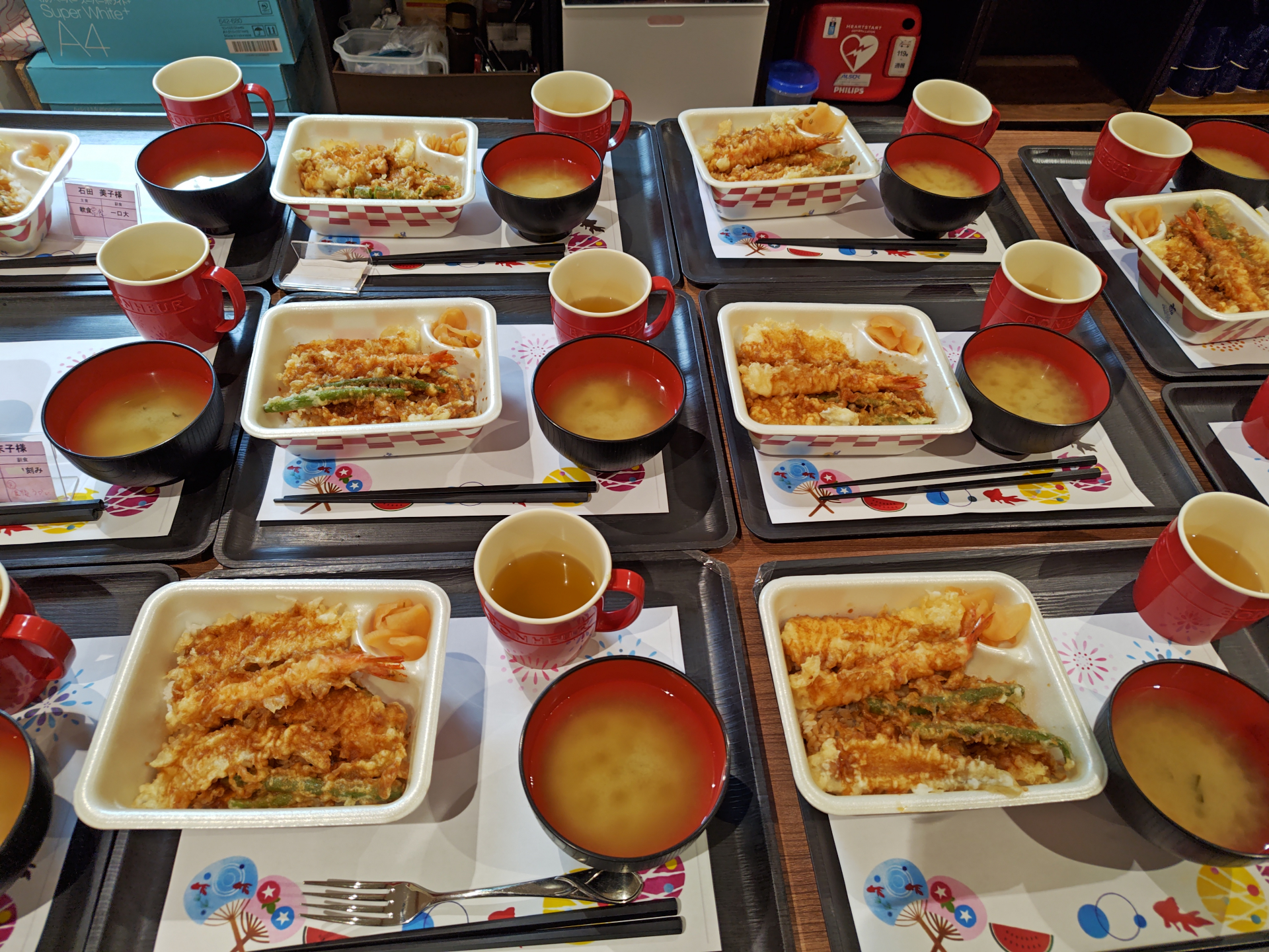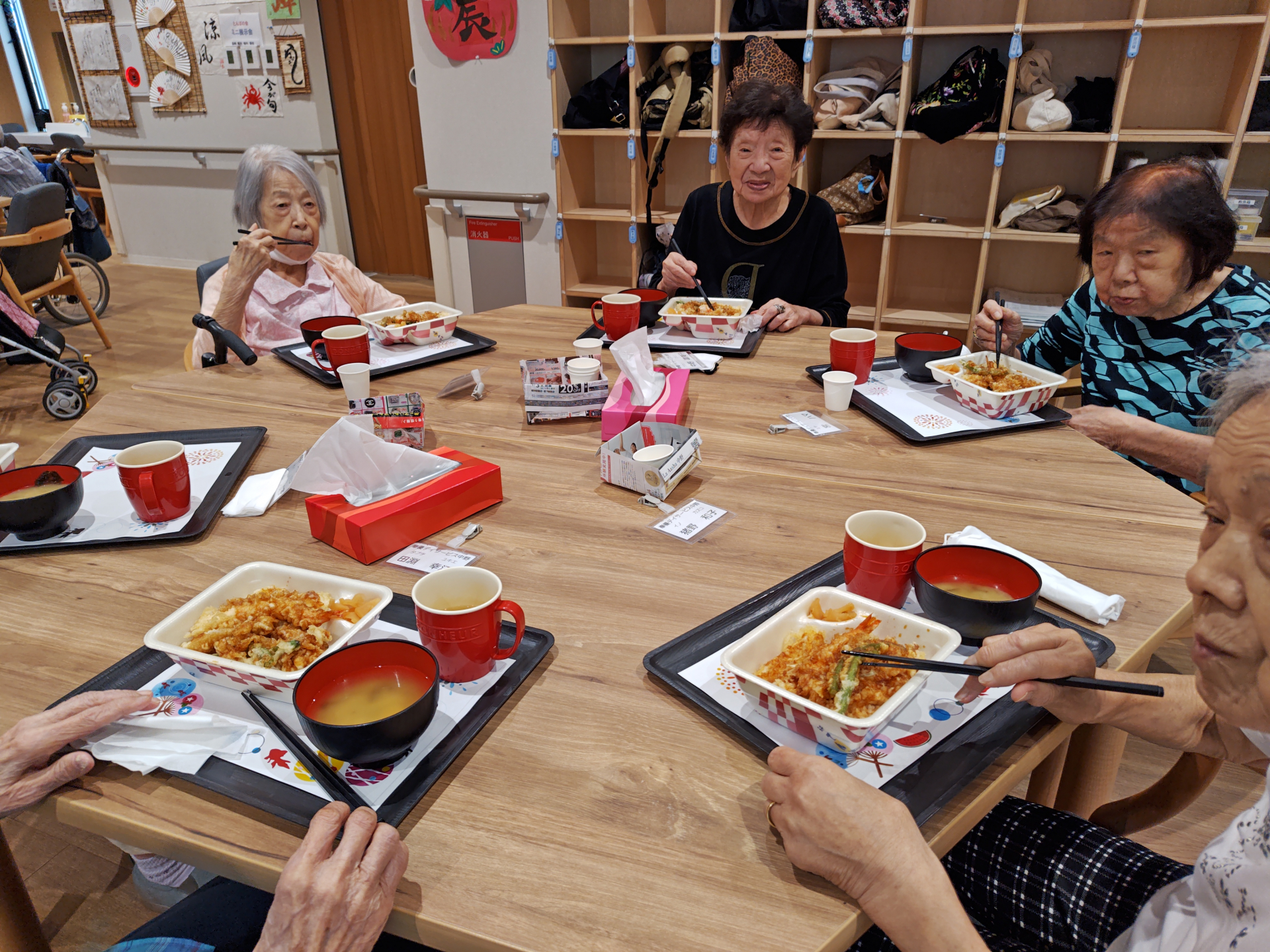 本日は中野デイの「夏祭り」初日です。午後からのイベントの前にてんやの定番弁当の天丼を召し上がっていただきました。