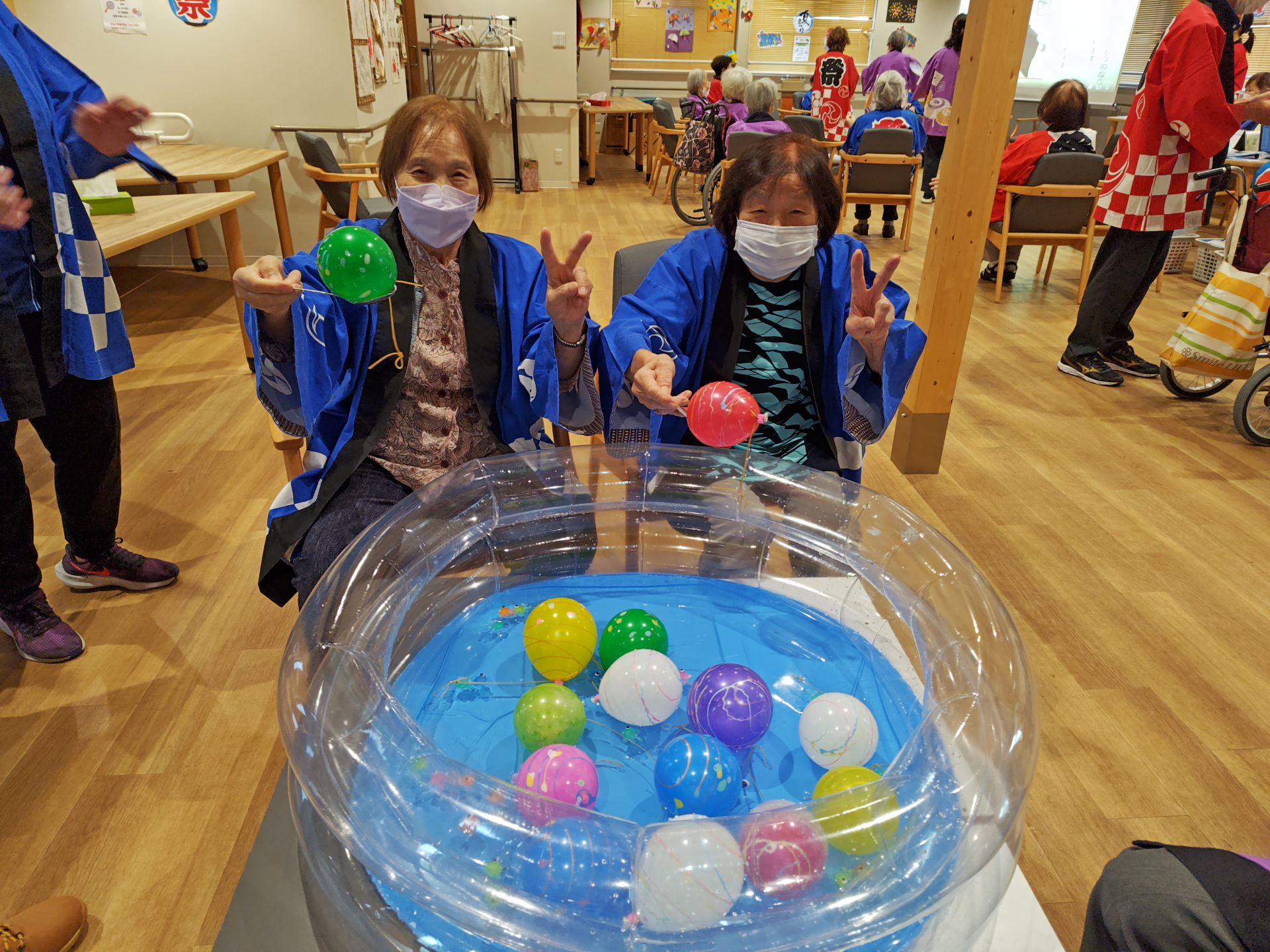 ヨーヨー釣りコーナーではヨーヨーをGETして思わずピース!(^^)!