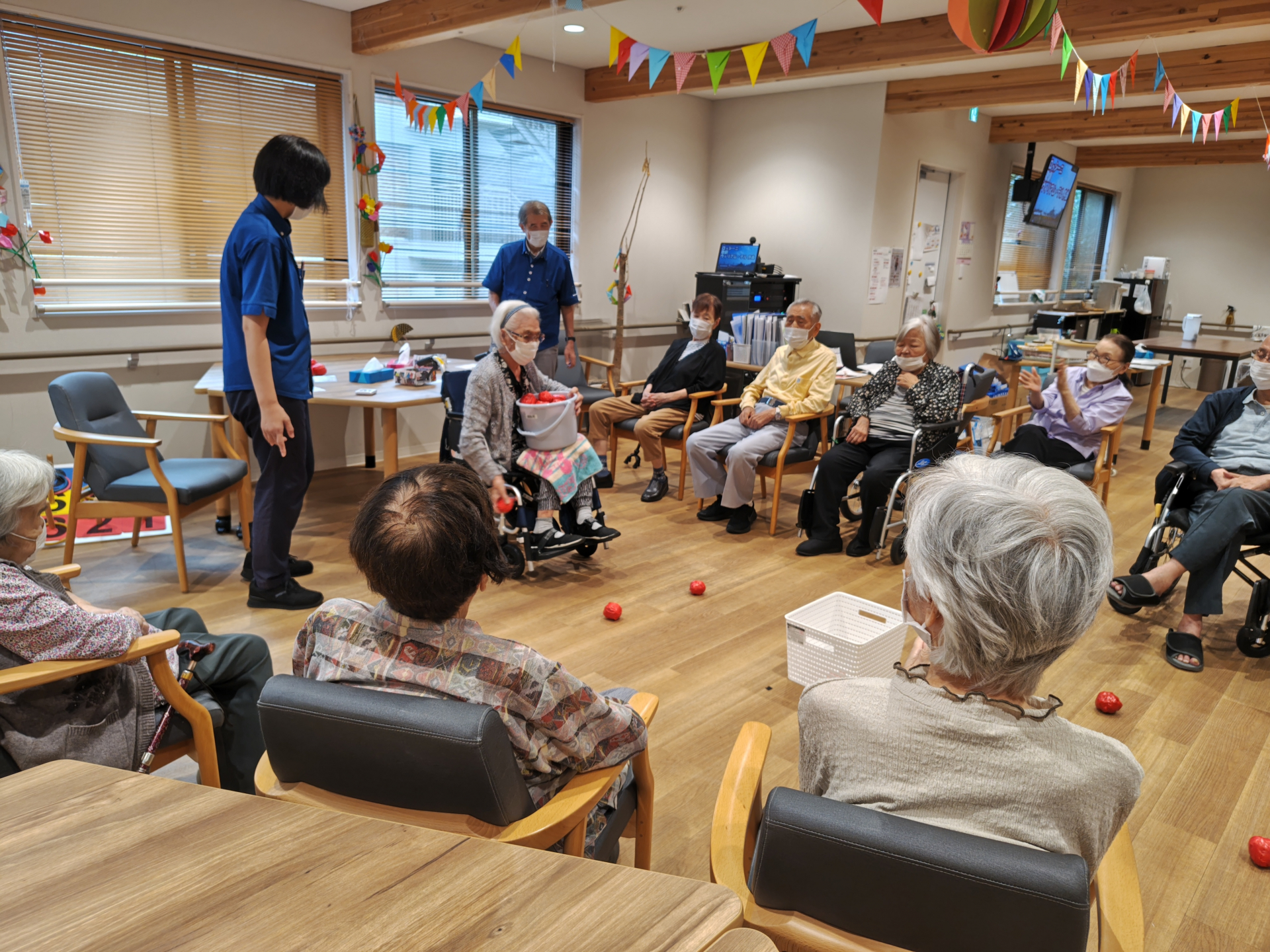 2024.10.02 活動報告 【中野デイ】玉入れゲーム Tweet シェアする 本日の上肢筋力トレーニングは「玉入れゲーム」。10月の中旬に行われる秋の運動会の予行練習!? 単純なゲームですが、なぜか大熱狂に。皆さま負けず嫌いですね(笑) 奉優デイサービス中野 T 前の記事 2024.10.03 活動報告 【中野デイ】運動会のお知らせ! 次の記事 2024.10.01 活動報告 【中野デイ】ヘアカットのおしらせ 一覧へ戻る