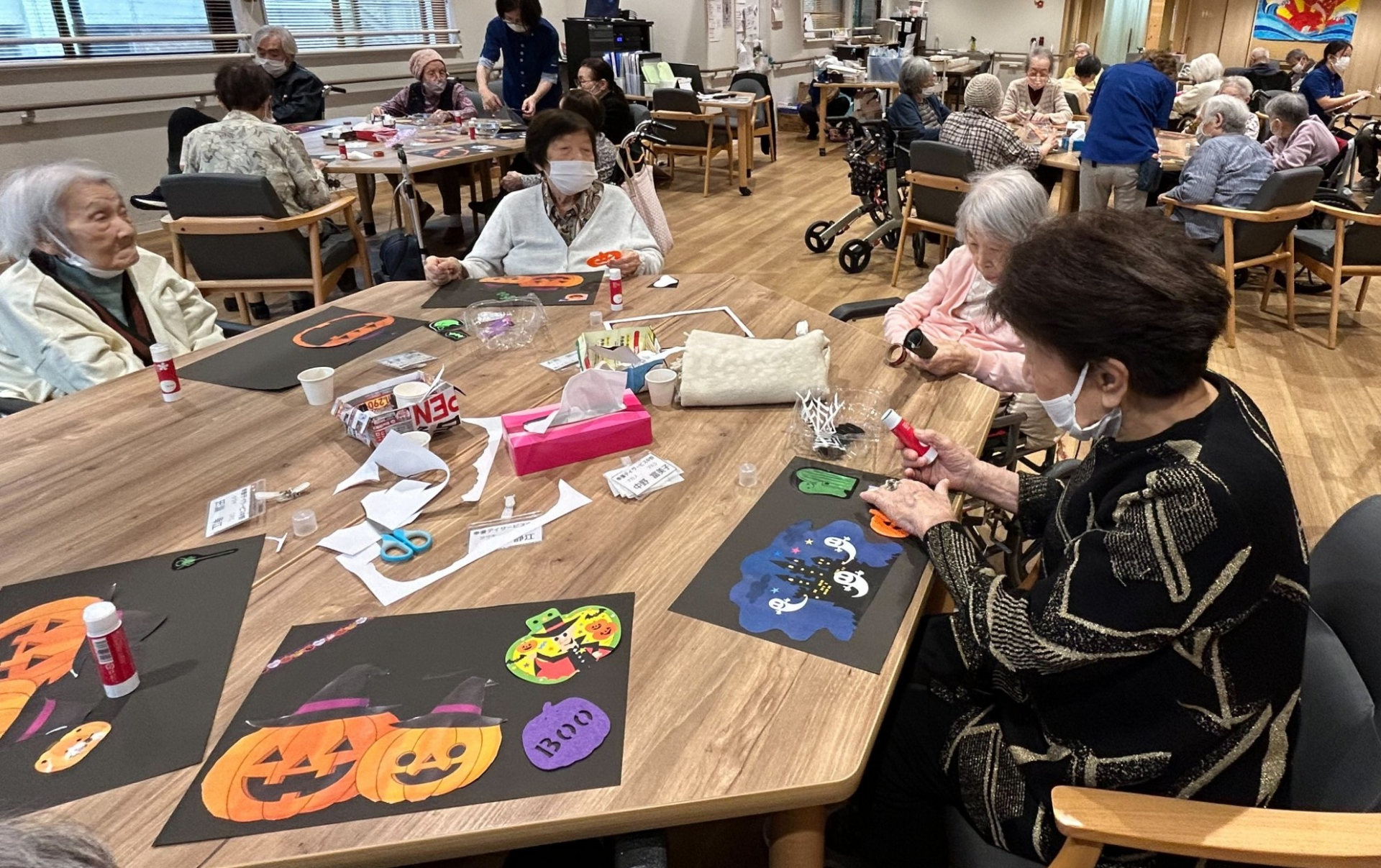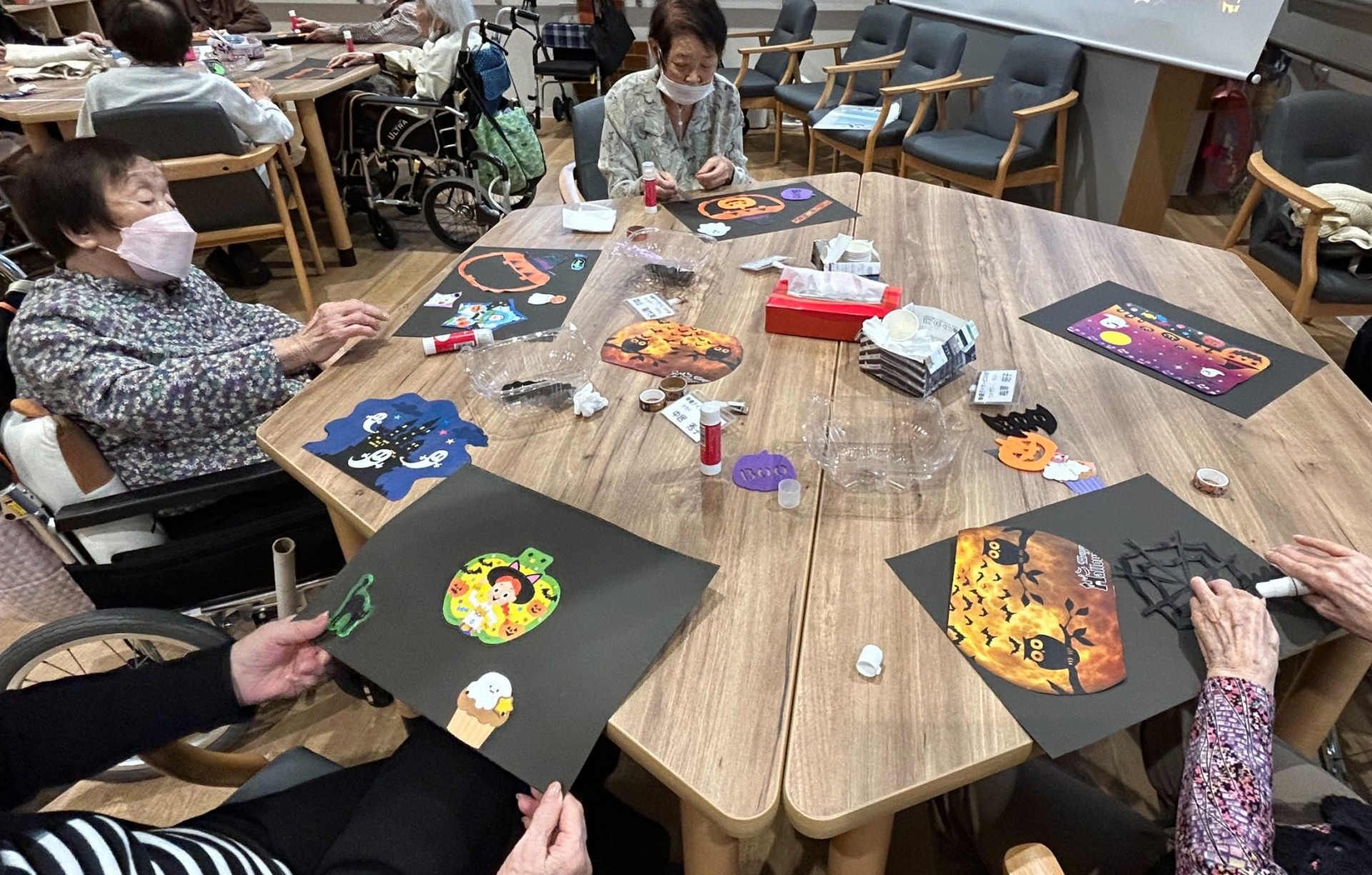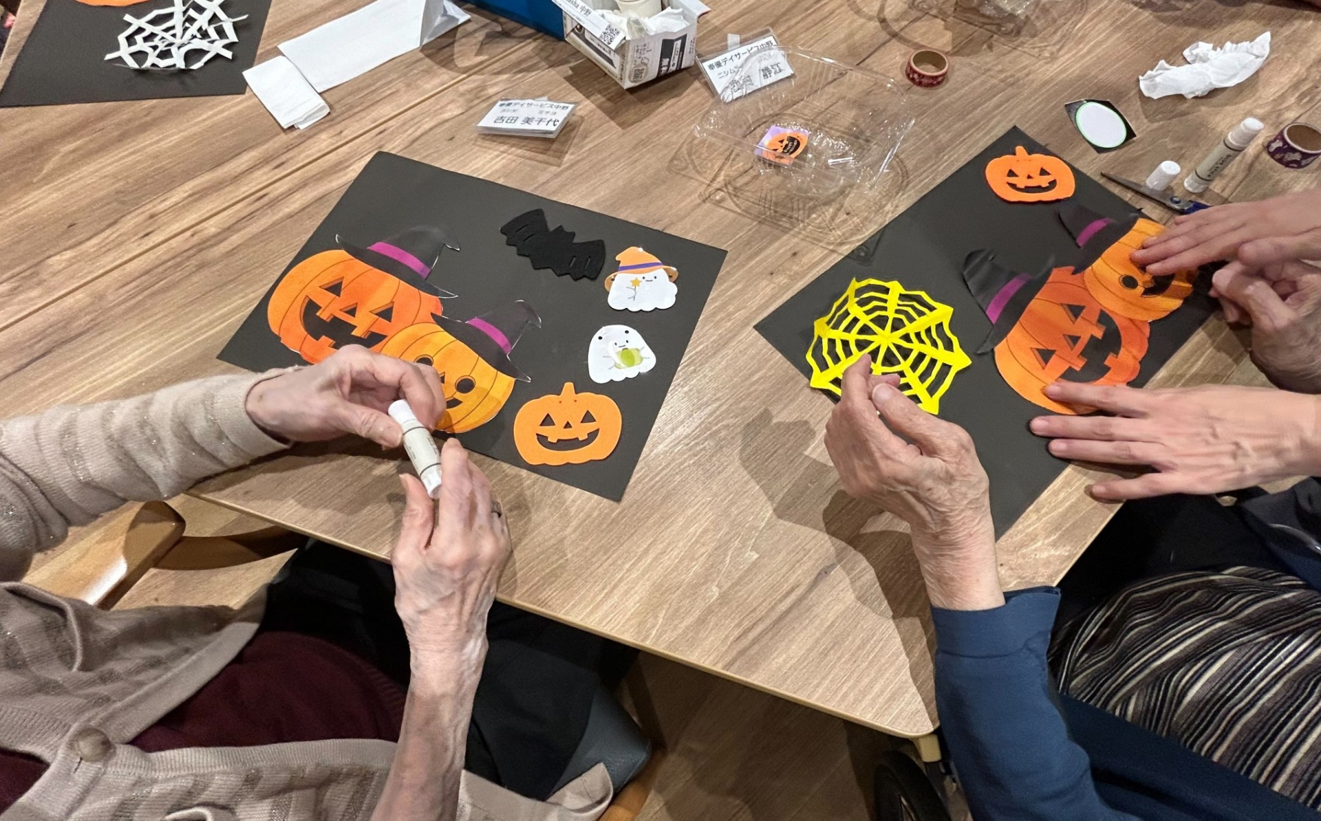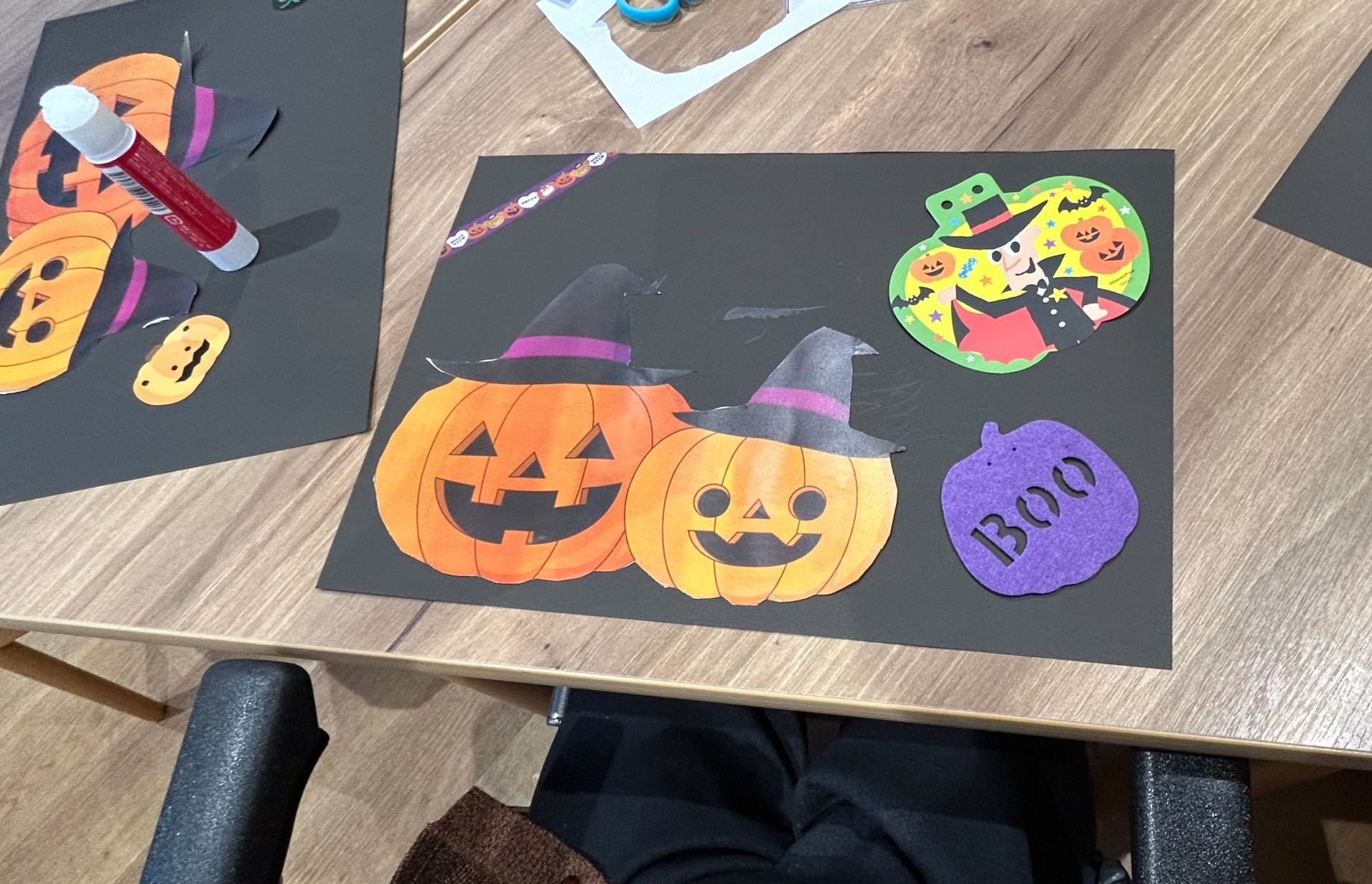 本日はハロウィンに向けて壁の飾り付けを皆さまと作りました。