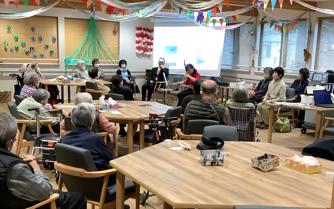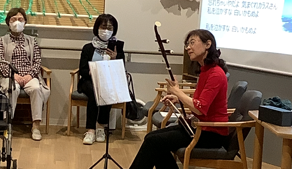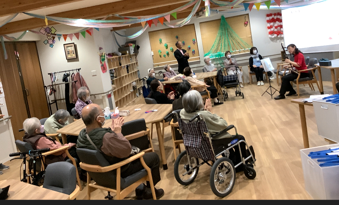 2024.11.14 活動報告 【中野デイ】二胡演奏会♪ Tweet シェアする 本日は大人気の二胡演奏会♪が開催されました。 二胡は中国大陸の遊牧民達が伝統楽器として楽しんでいたそうです。 デイルームに神秘的な音楽が流れていました。 奉優デイサービス中野 T 前の記事 2024.11.15 活動報告 【中野デイ】クリスマス飾り 次の記事 2024.11.14 活動報告 【中野デイ】トルト実施風景 一覧へ戻る