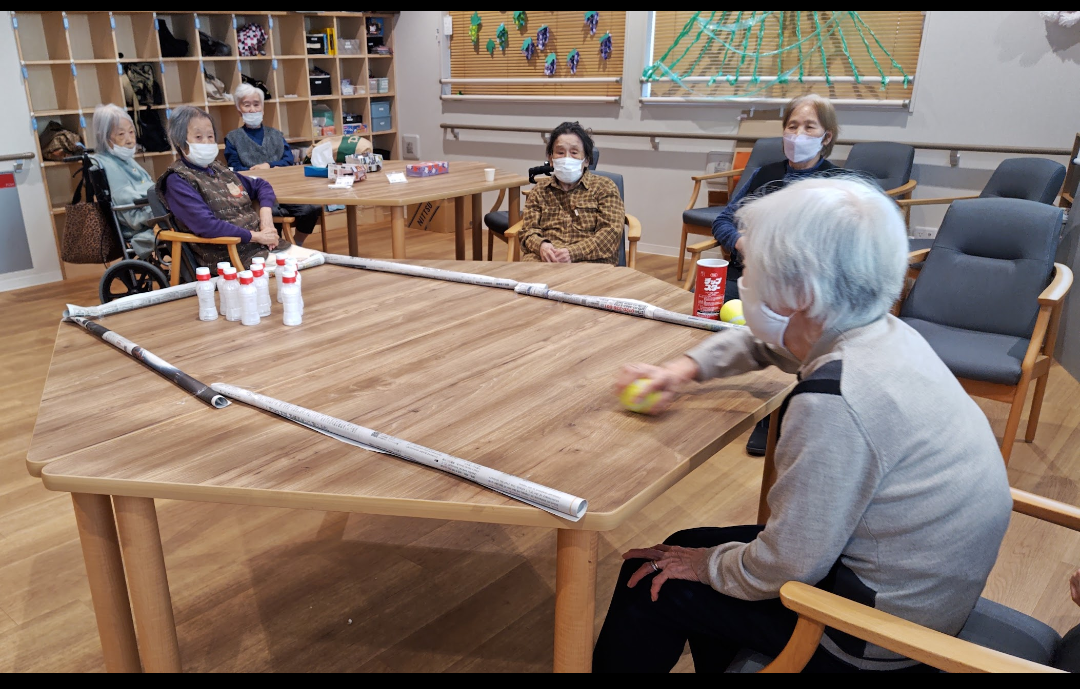本日の上肢筋力強化ゲームは「テーブルボーリング」を実施しました。