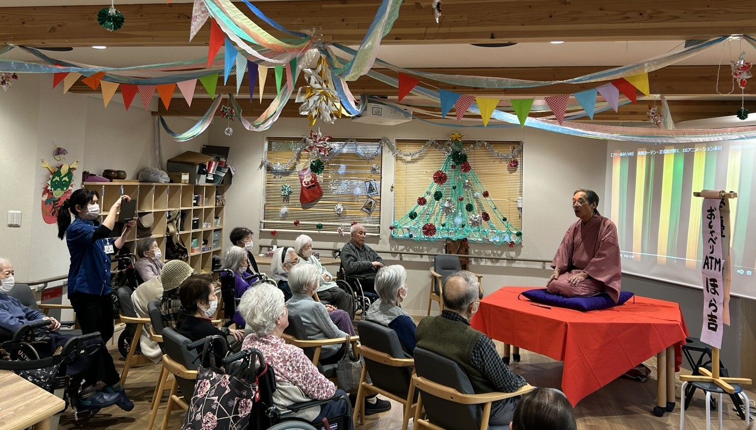 2024.12.16 活動報告 【中野デイ】フェスタ落語会 Tweet シェアする 本日は本格的な落語会が開催され、二人の出演者の方に落語を披露して頂きました。 皆様楽しそうに話芸を楽しまれていました。 奉優デイサービス中野 T 前の記事 2024.12.18 活動報告 【中野デイ】門松作り 次の記事 2024.12.13 活動報告 【中野デイ】サックス演奏会♪ 一覧へ戻る