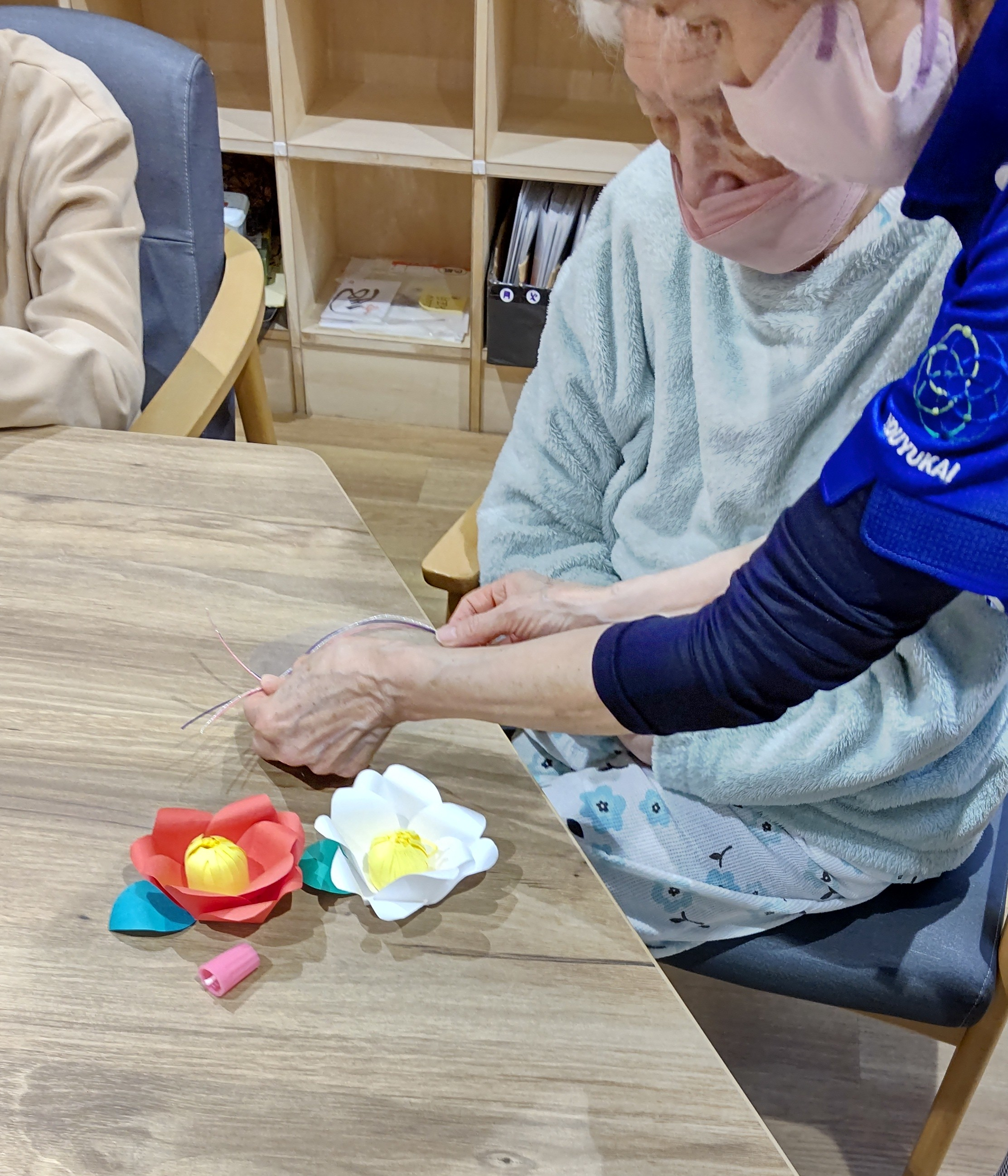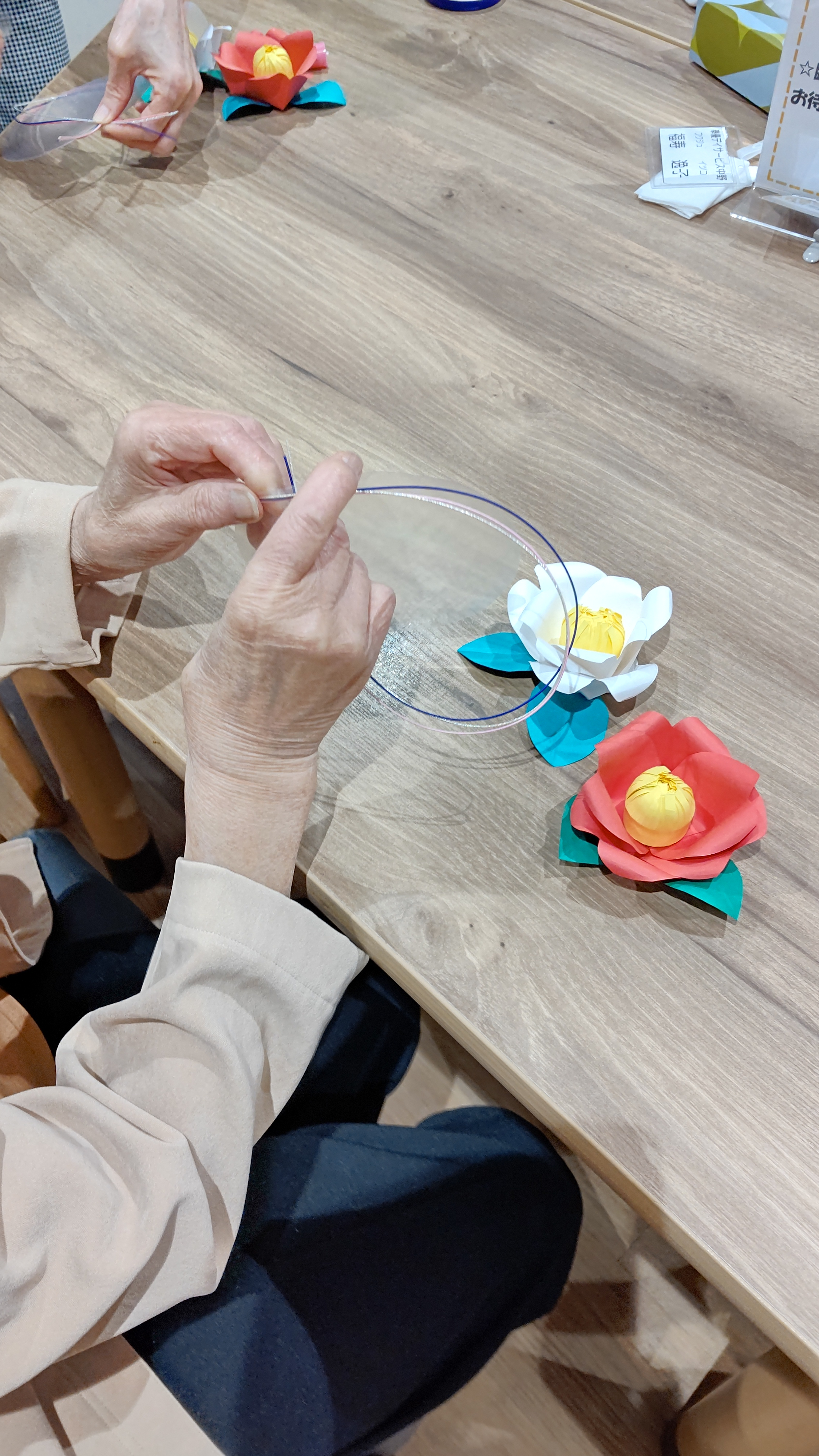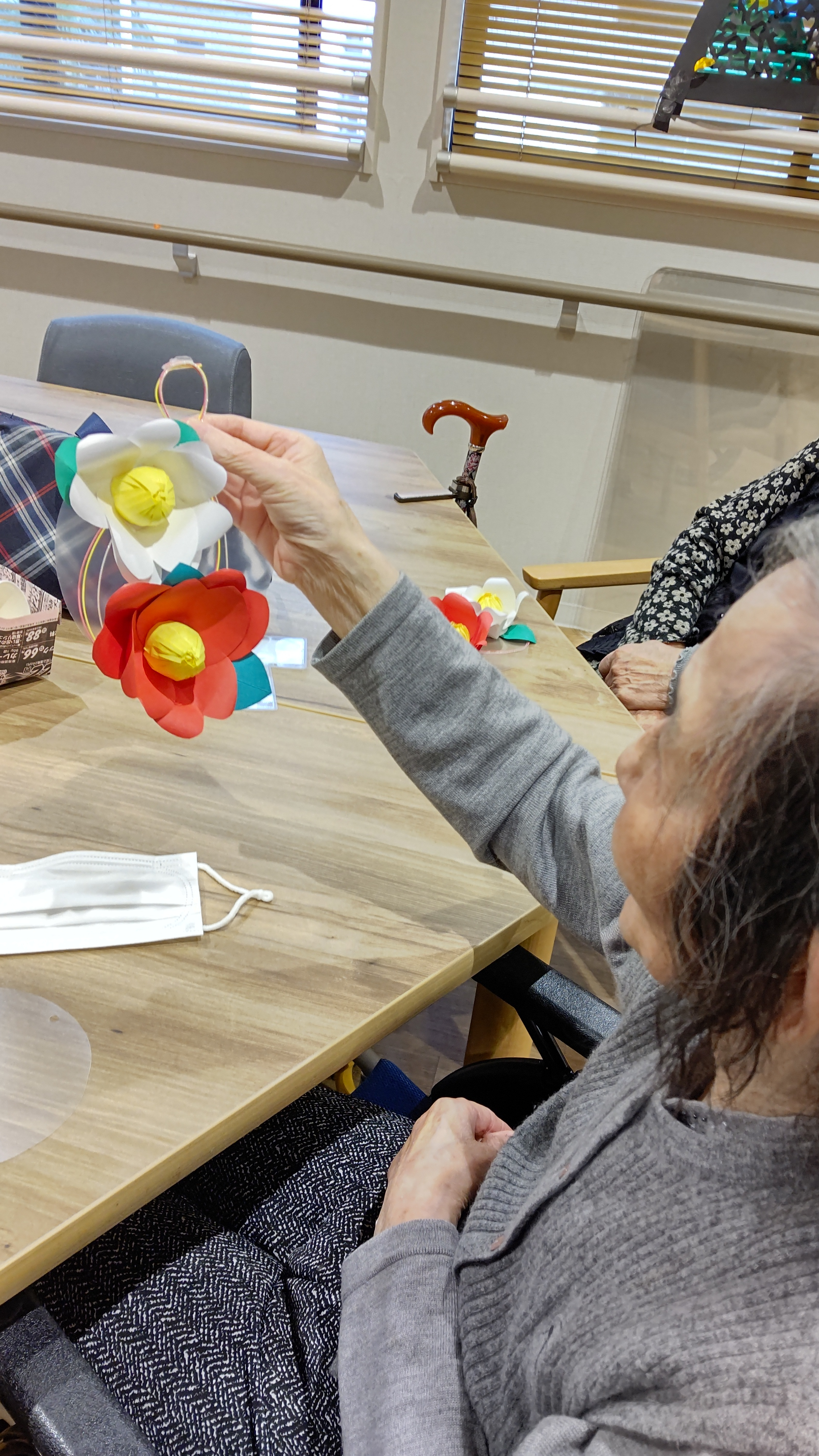 2023.12.15 活動報告 【中野デイ】正月飾り(手工芸) Tweet シェアする 本日は正月の飾りとして椿作りを行いました。 皆様ご自宅の玄関や居間に本日の手作りの正月飾りをお飾り下さい。 我が家も殺風景だから、一つ余分に作ってくれないかな~ スベる男より 前の記事 2023.12.15 活動報告 みのるさんと歌おう 次の記事 2023.12.13 活動報告 【中野デイ】デザートバイキング 一覧へ戻る