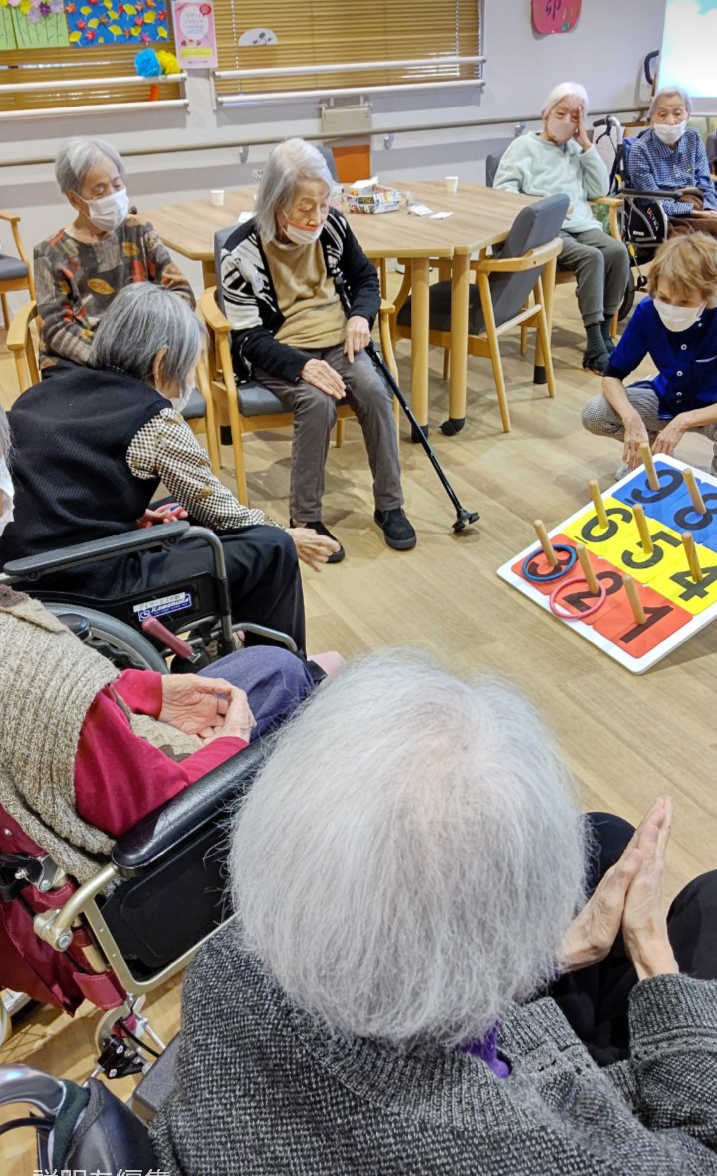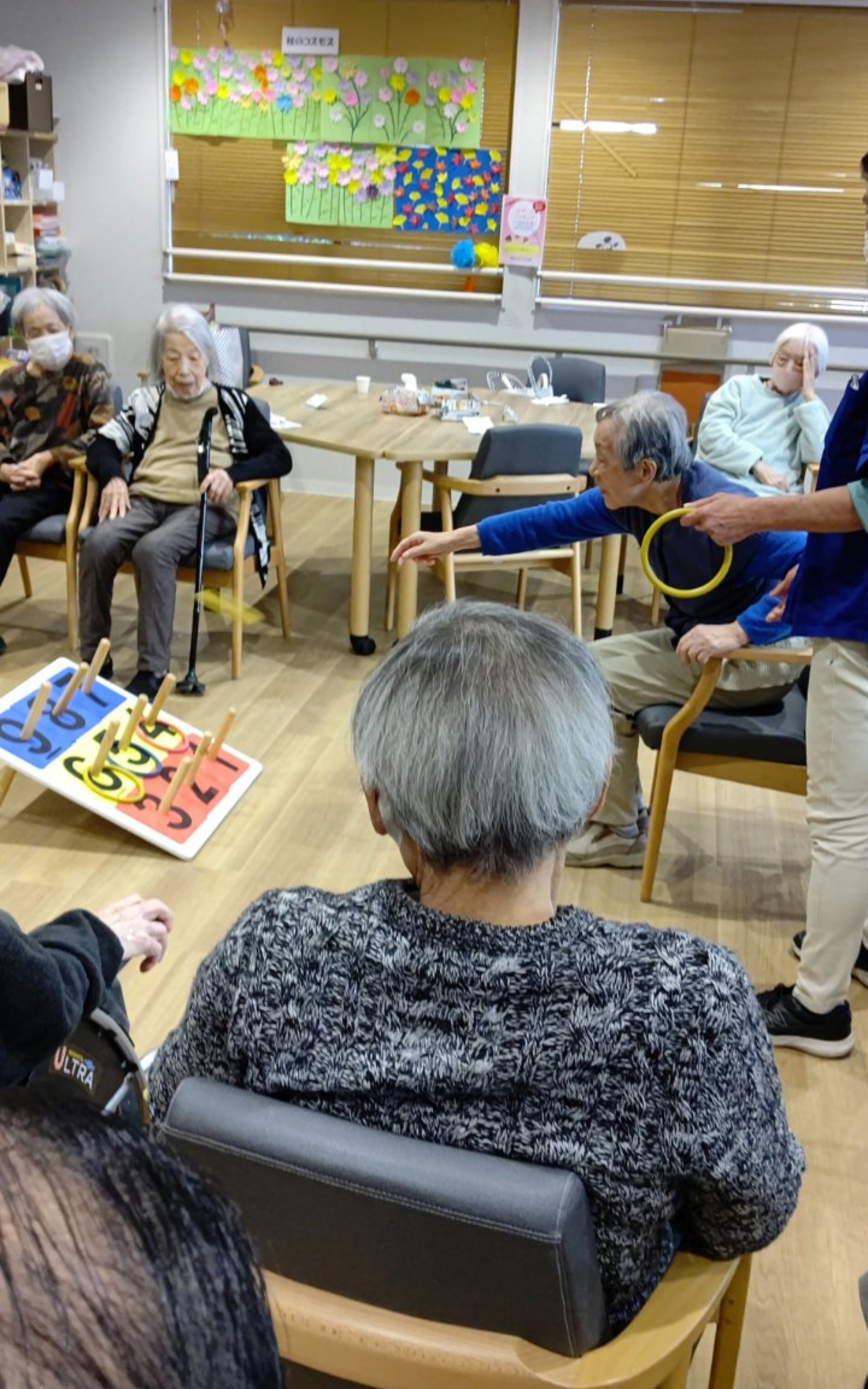 2023.12.06 活動報告 【中野デイ】輪投げゲーム! Tweet シェアする 本日も上肢筋力レクとしてシンプルで人気の輪投げゲームを実施しました。 皆さま高得点なおかつ一列揃いのBINGOを狙ってます。 景品がでれば、頑張るのだけど、、、、 スベる男より 前の記事 2023.12.07 活動報告 【中野デイ】クリスマス会 次の記事 2023.12.05 活動報告 【中野デイ】風船飛ばしゲーム 一覧へ戻る