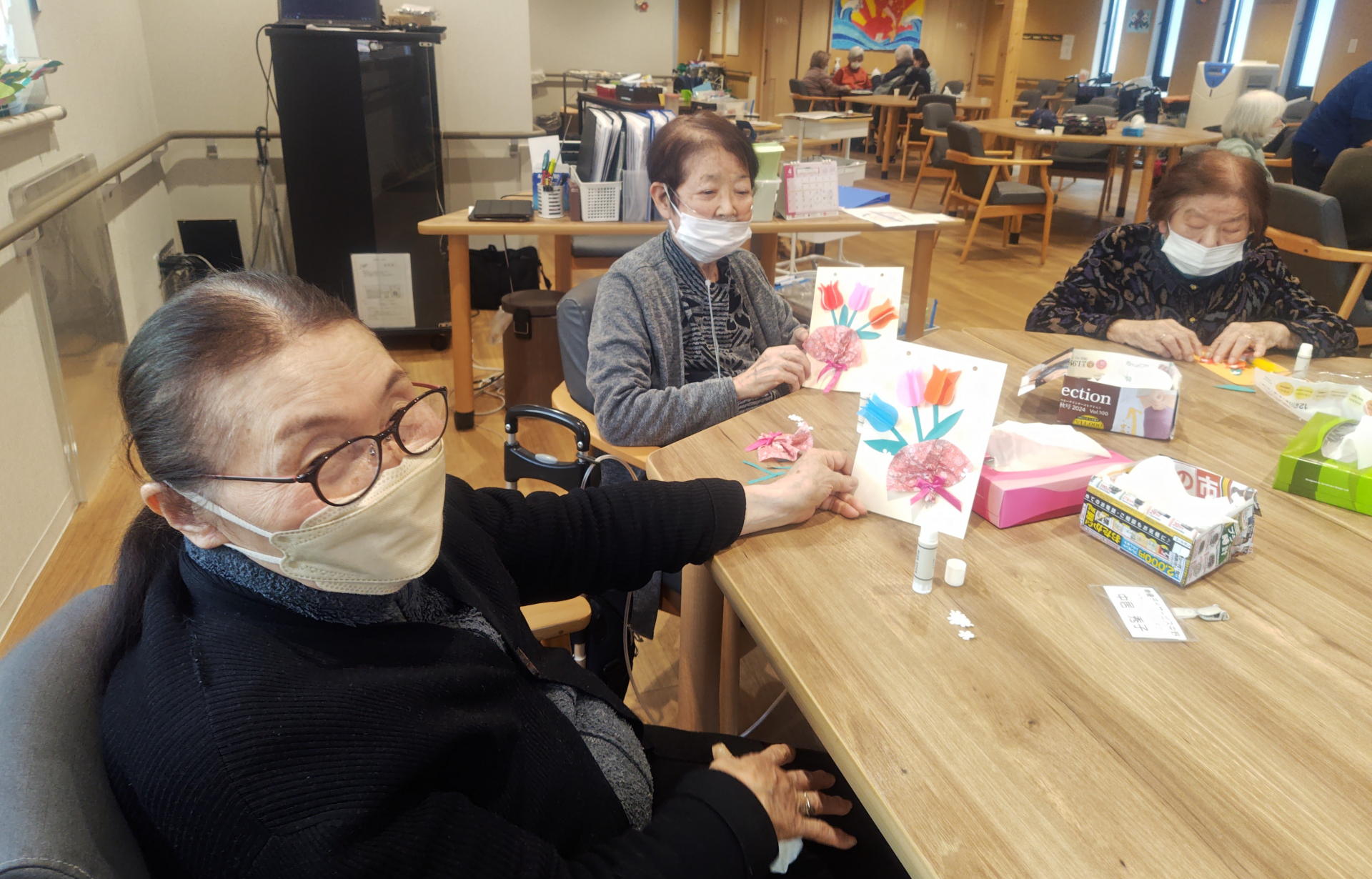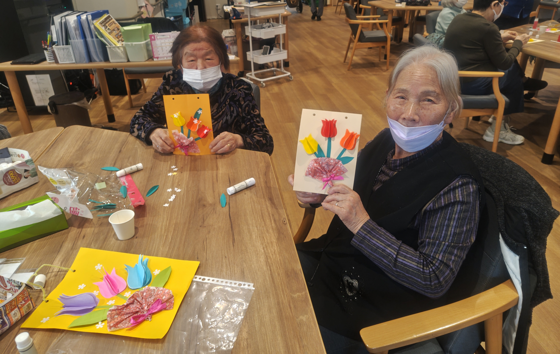 2025.03.19 活動報告 【中野デイ】手工芸 春の華作り Tweet シェアする 本日の手工芸は春の花作りでした。 見本↓↓↓ 今日の作品は意外と難しいようで皆様言葉も発せず、黙々と取り組まれていました。 うちに作品が完成しました。 はいポーズ!! 奉優デイサービス中野 T 前の記事 2025.03.21 活動報告 【中野デイ】サックス演奏会♪ 次の記事 2025.03.19 活動報告 【中野デイ】3月ヘアカットサービス✂ 一覧へ戻る