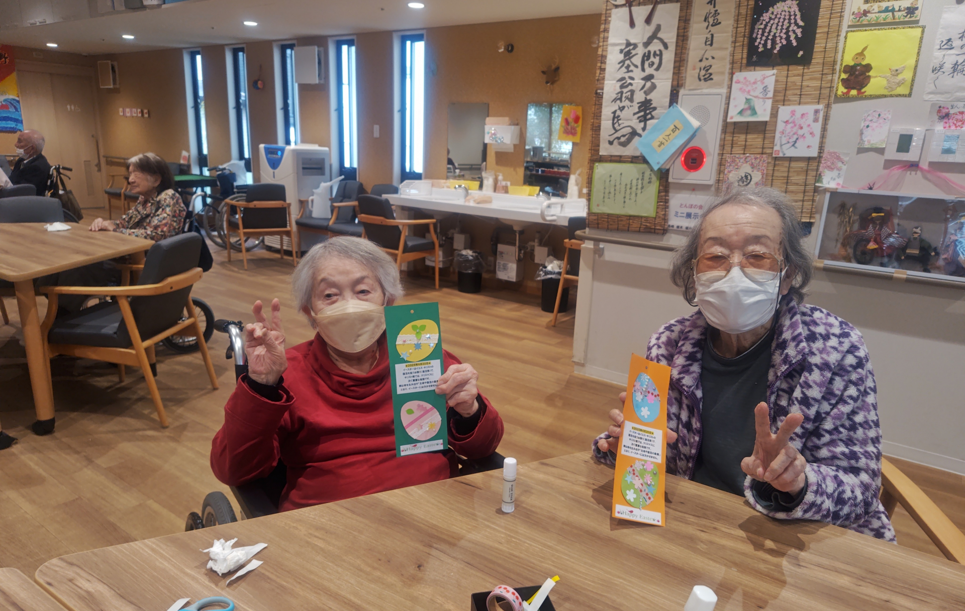 本日の午後レクは「イースターエッグ飾り」の手工芸でした。見本↓↓↓↓↓↓
