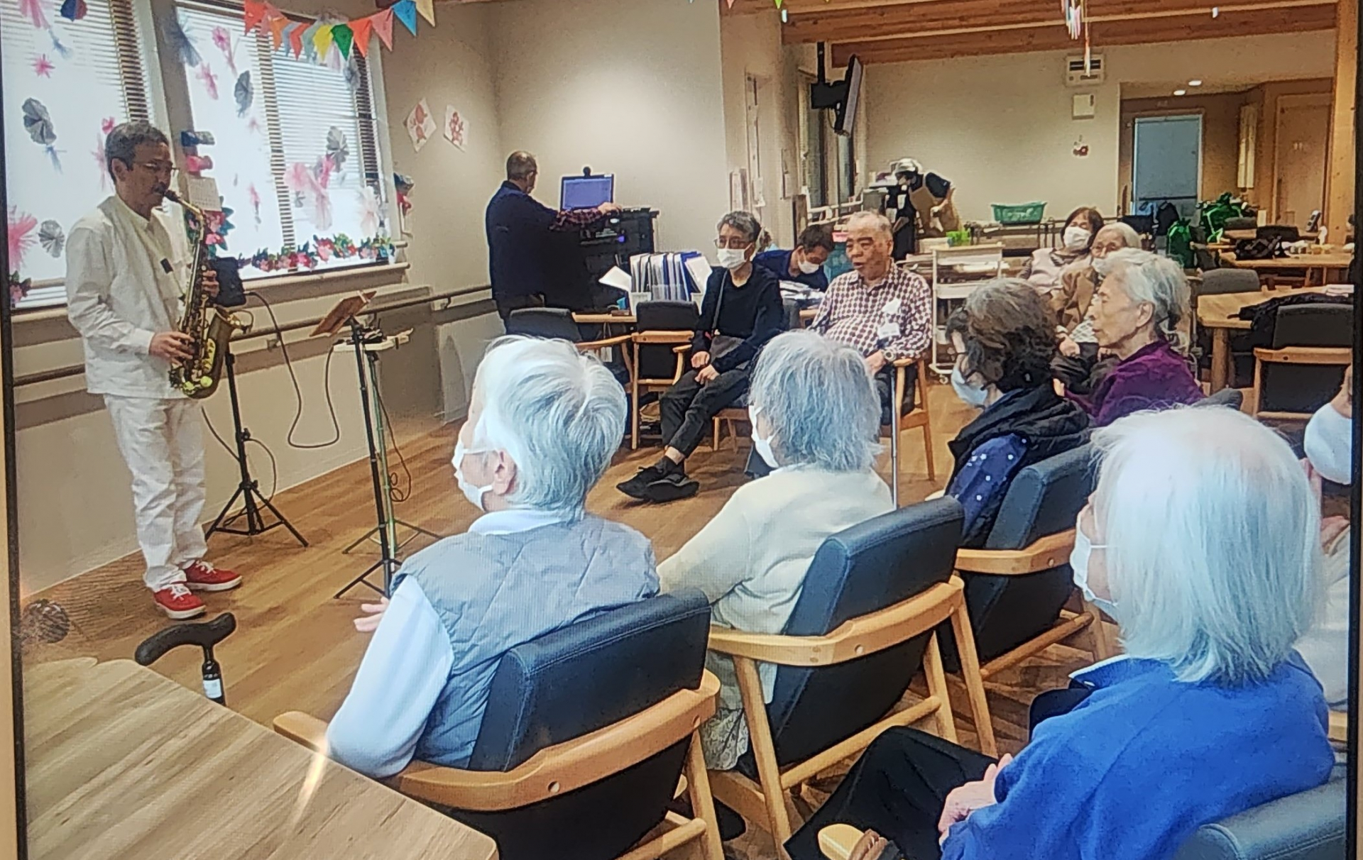 おなじみのサックス演奏会で最初に皆様自分の聞きたい曲のリクエストを行います。最近は職員もよくリクエストしています(笑)