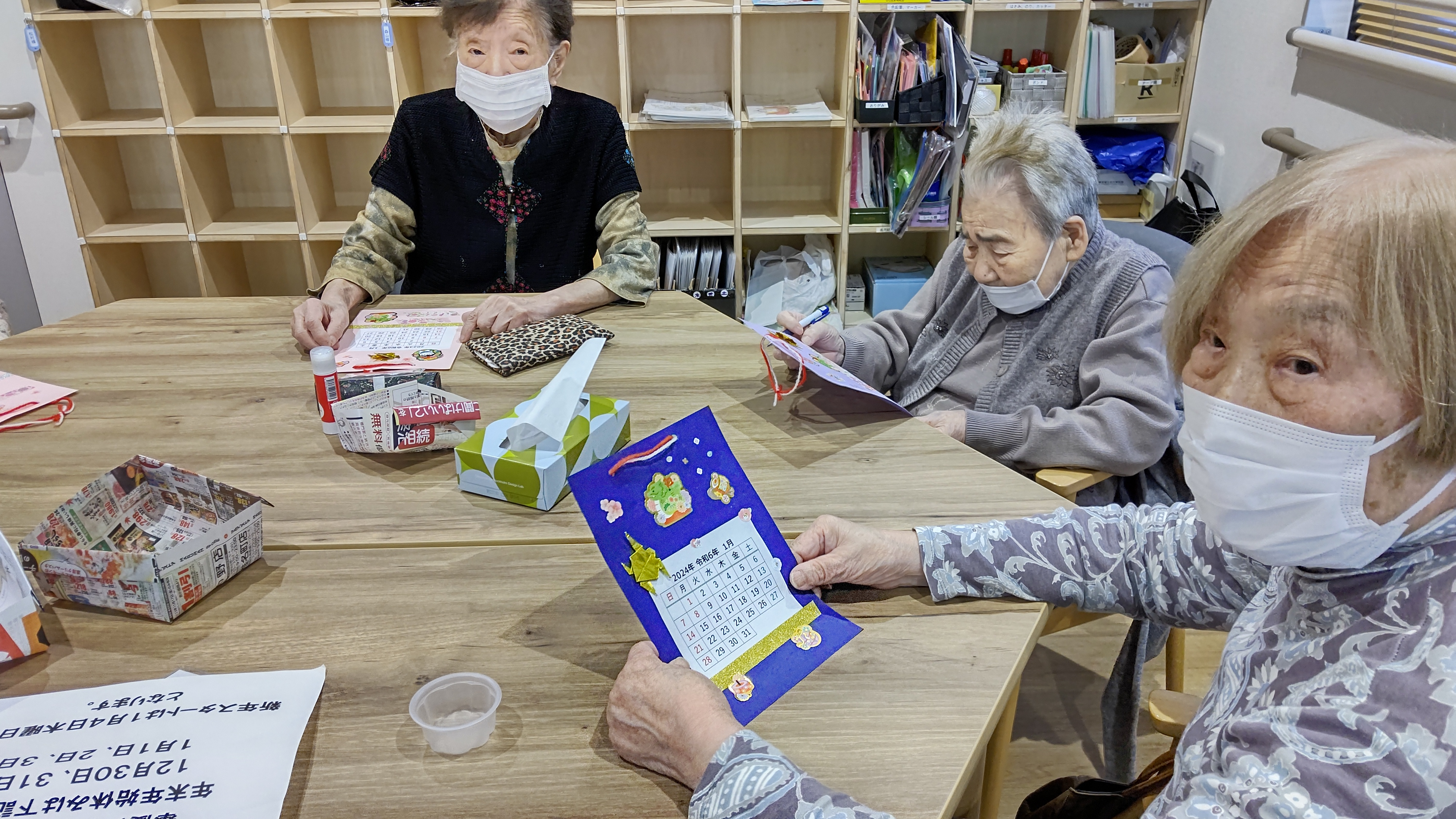 2023.12.26 活動報告 【中野デイ】新年カレンダー作り Tweet シェアする 本日は令和6年1月のカレンダー作りを行いました。 皆様色や飾りをアレンジしてそれぞれ個性のあるカレンダーに仕上がっていました。 男性陣のカレンダーもパチリ📷 私も挑戦しようかなぁ スベる男より 前の記事 2023.12.28 活動報告 【中野デイ】☆お誕生日会☆ 次の記事 2023.12.25 活動報告 【中野デイ】クリスマス会 一覧へ戻る