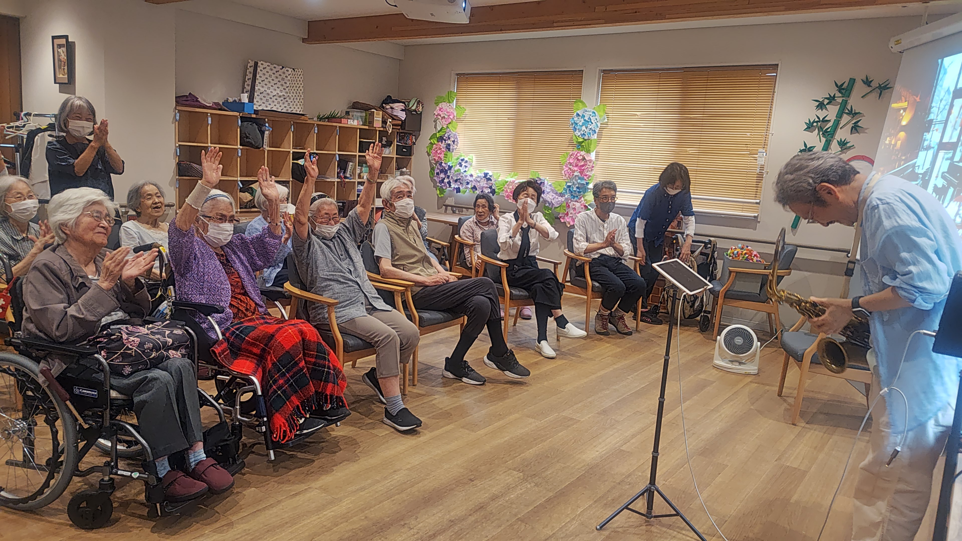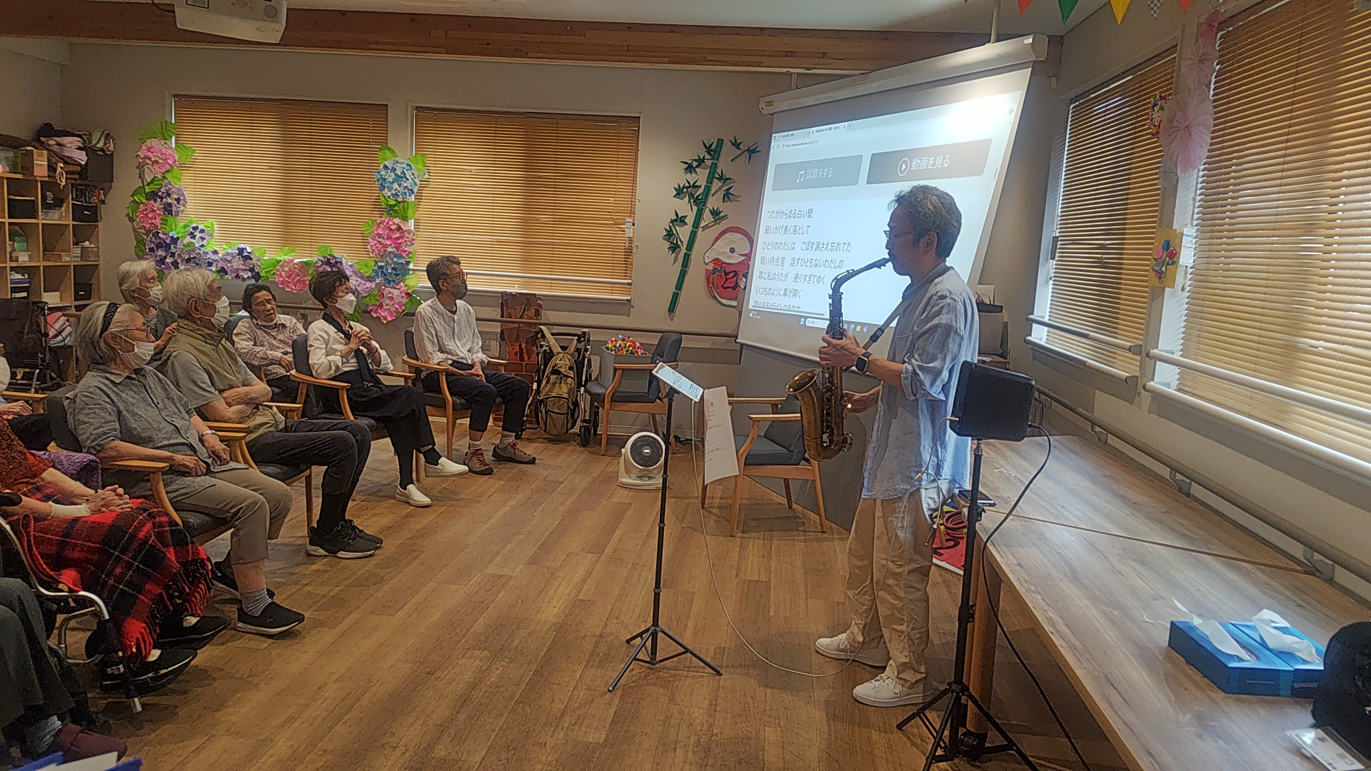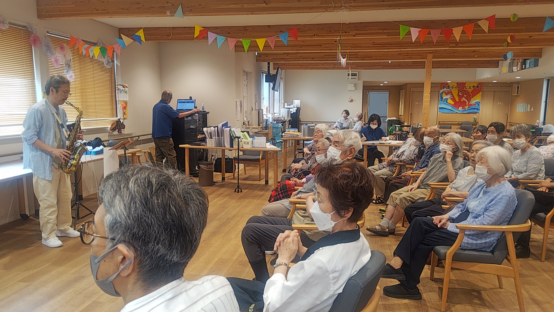 おなじみのサックス演奏会で最初に皆様自分の聞きたい曲のリクエストを行います。最近は職員もよくリクエストしています(笑) 今回も演奏前に既に10曲近くのリクエスト曲の希望がありました。笑