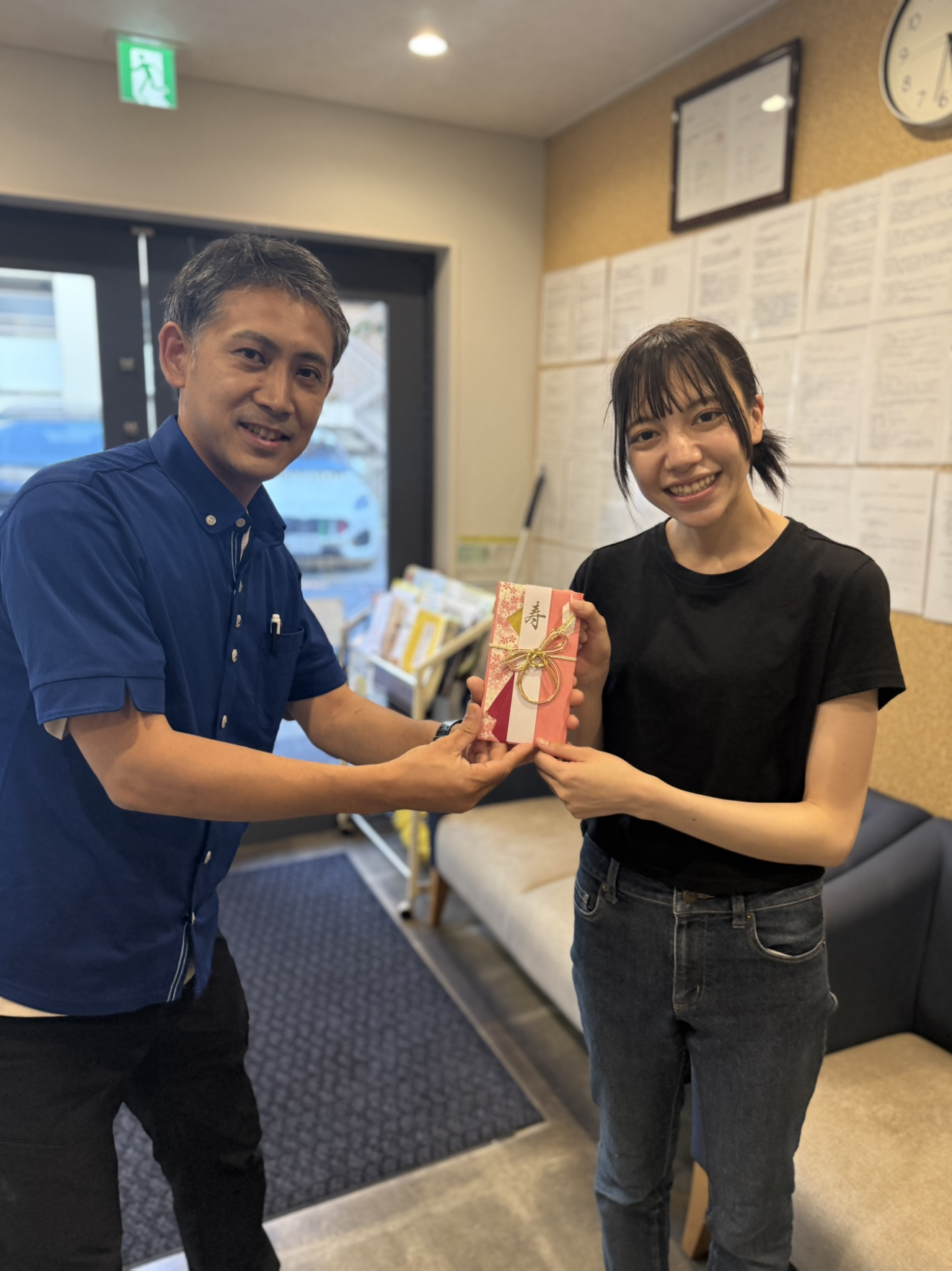 新たな門出を祝して、施設長よりお祝いをお贈りいたしました。
