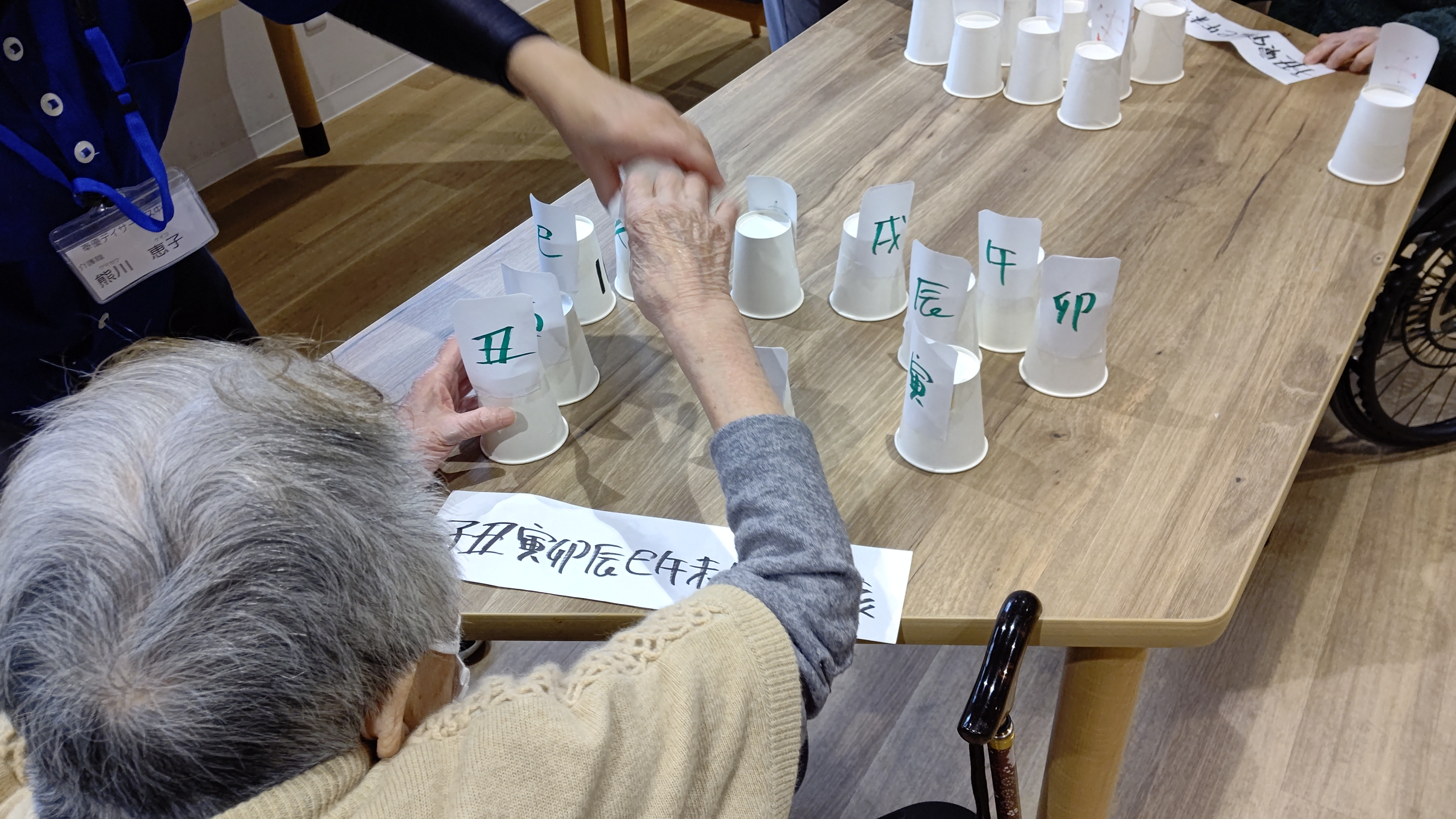 今年の干支は辰(龍)年ですが、このゲームは干支を順番にどちらが早く並べられるかという単純なゲームでしたが、干支のコップがなかなか見つからず相手に負けじとデットヒートが繰り広げられました。