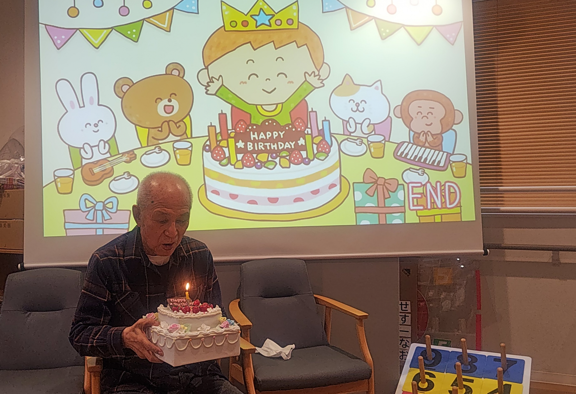 ハッピーバースデーソングをみんなで歌い、職員特製の写真付き、バースデーカードを贈呈させて頂いてます。いくつになっても誕生日を祝われるのは嬉しいものですよね. お誕生日おめでとうございます!