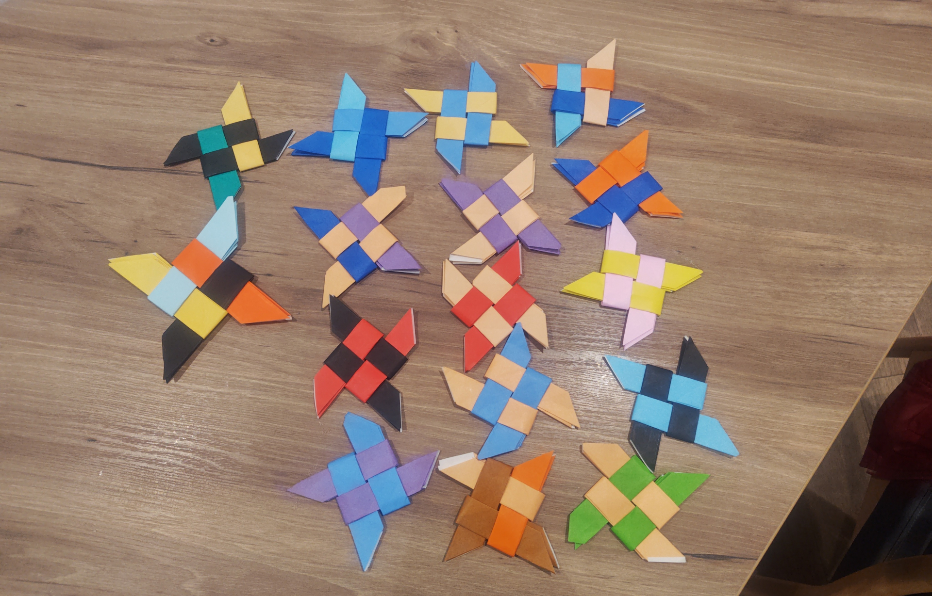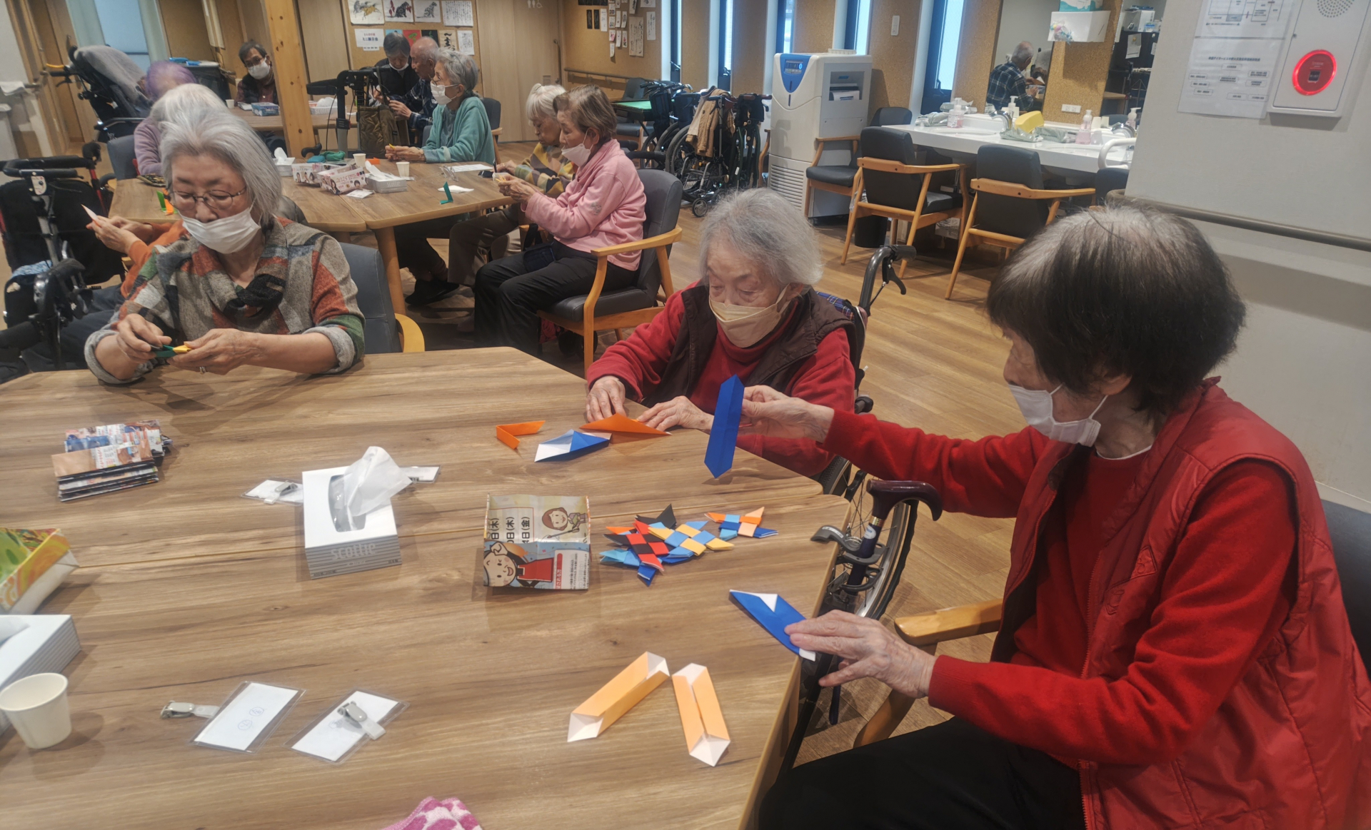 女性陣は彩りを考えて折り紙を色々組み合わせて折っていました。