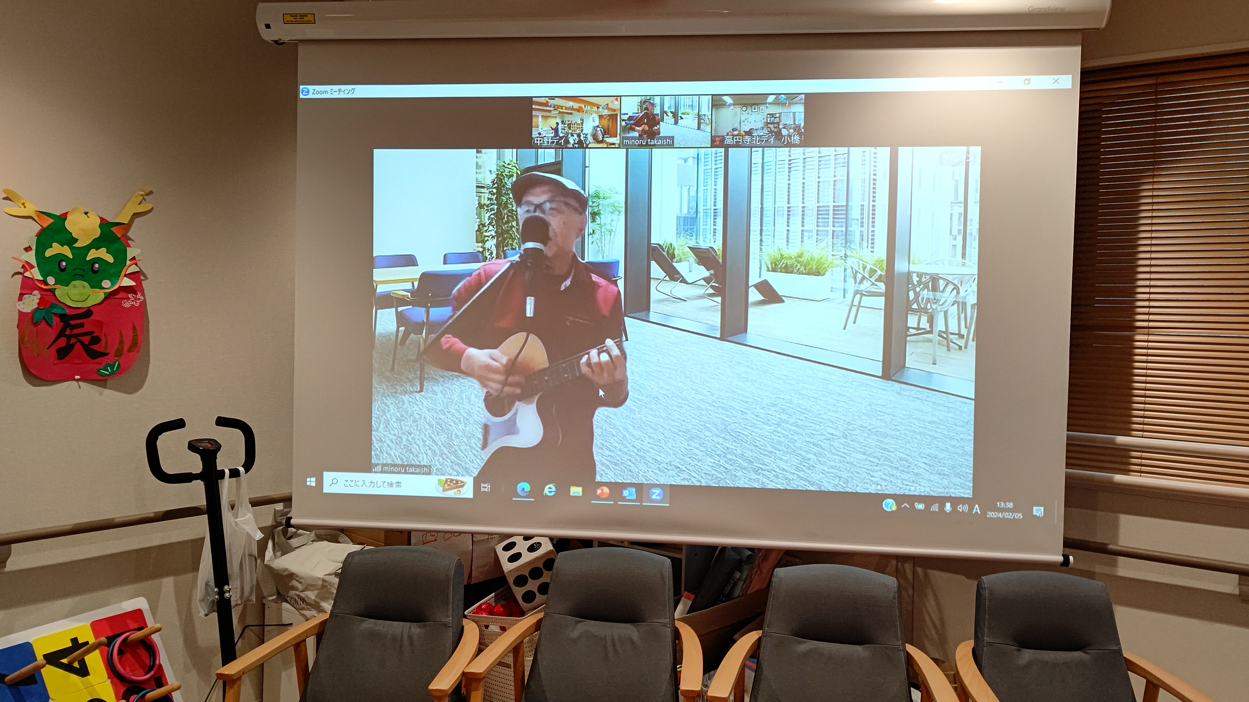 2024.02.05 活動報告 【中野デイ】みのるさんと歌おう Tweet シェアする 本日はみのるさんと歌おう会が開催されました。 この催しはzoomで同時に高円寺デイでも開催されました。 皆様知った曲では大きな声で口ずさんでいらっしゃいました。 スベる男より 前の記事 2024.02.06 活動報告 【中野デイ】コロコロゲーム 次の記事 2024.02.02 活動報告 【中野デイ】恵方巻き巻きゲーム 一覧へ戻る