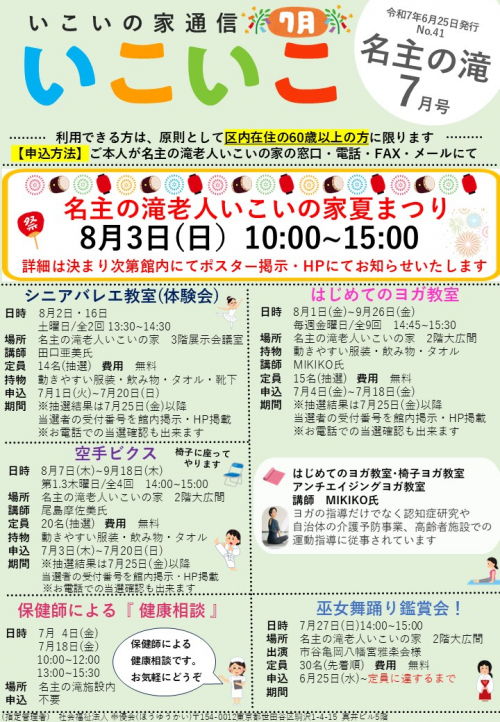 2025.06.28 いこいこ体操実施いたしました 活動報告 2025.06.28 はぎれで作るくるみボタン講座の様子② 活動報告 2025.06.28 【当選発表】「手話でおしゃべり」抽選結果のお知らせ お知らせ 2025.06.26 【当選発表】「折り紙で作るメモケース」抽選結果のお知らせ お知らせ 2025.06.26 【当選発表】「運動でカラダほぐし」抽選結果のお知らせ お知らせ 2025.06.25 健康フラダンス教室開催致しました 活動報告 2025.06.25 巫女舞踊り鑑賞会お申込み開始致します お知らせ 2025.06.25 いこいこ通信7月号発行しました お知らせ 2025.06.25 【当選発表】「アンチエイジングヨガ」抽選結果のお知らせ お知らせ 2025.06.25 【当選発表】「健康フラダンス教室」抽選結果のお知らせ お知らせ 2025.06.25 【チェアヨガ7月~9月】当選結果 お知らせ 2025.06.24 みんなでボッチャ開催致しました 活動報告 2025.06.24 【当選発表】「空手ビクス」抽選結果のお知らせ お知らせ 2025.06.22 今期の手話講座、終了いたしました 活動報告 2025.06.22 花壇の整備始めました⑦ 活動報告 1 … 16 17 18 19 20 … 57
