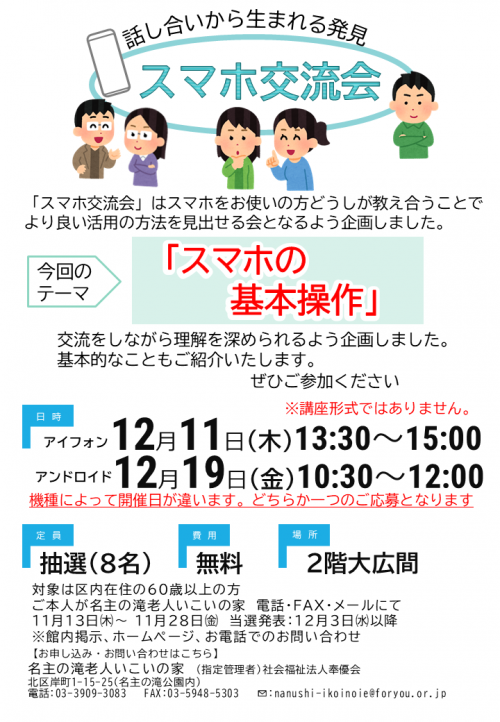 2025.11.15 チェアヨガ教室開催致しました 活動報告 2025.11.15 ボランティアサイト YELLのご紹介 ニュース 2025.11.13 脳いきいきタブレット講座開催致しました 活動報告 2025.11.13 12月開催 スマホ交流会「スマホの基本操作」受付始まりました お知らせ 2025.11.13 【当選発表】「11月開催みんなで脳トレ」抽選結果のお知らせ お知らせ 2025.11.13 【当選発表】「11月かんたん英会話」抽選結果のお知らせ お知らせ 2025.11.12 【当選発表】11月「スマホ個別相談」抽選結果のお知らせ お知らせ 2025.11.09 講座「はじめてのエッセイ」開催しました 活動報告 2025.11.09 講座「手話でおしゃべり」開催いたしました 活動報告 2025.11.09 講座「知っているはずの『国語』」お申込み受け付け開始しました お知らせ 2025.11.08 シニアバレエ教室開催致しました 活動報告 2025.11.08 みなさまの健康法⑬ 高齢者福祉センター 2025.11.08 みんなでボッチャ開催しました 活動報告 2025.11.08 【当選発表】11月スマホ交流会「ChatGPT」抽選結果のおしらせ お知らせ 2025.11.07 【当選発表】「クレヨンアート」抽選結果のお知らせ お知らせ 1 2 3 4 5 … 57