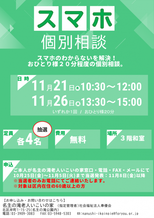 2024.11.07 新しい仲間が増えました お知らせ 2024.11.03 第5回初めてでも楽しめるタブレット体験講座開催致しました 活動報告 2024.11.02 ボランティアサイトエールのご紹介 お知らせ 2024.11.01 はじめてのヨガ教室開催しました 活動報告 2024.11.01 健康相談開催致しました 活動報告 2024.11.01 はじめてのヨガ教室お申込み開始致します。 お知らせ 2024.11.01 Halloweenまた来年 活動報告 2024.11.01 11月のスマホ講座「Googleを使ってみましょう」ご応募受付中 お知らせ 2024.11.01 「11月のスマホ個別相談」お申込み受付中です お知らせ 2024.11.01 みんなで脳トレ 活動報告 2024.11.01 みんなでe-スポーツ開催致します お知らせ 2024.10.30 e-スポーツ開催致しました 活動報告 2024.10.29 【12月】『マットで体幹運動とストレッチ』お申込み開始致します お知らせ 2024.10.27 第4回初めてでも楽しめるタブレット体験講座開催しました 活動報告 2024.10.27 ちぎり絵で作る季節のカード申込受付中です お知らせ 1 … 34 35 36 37 38 … 57