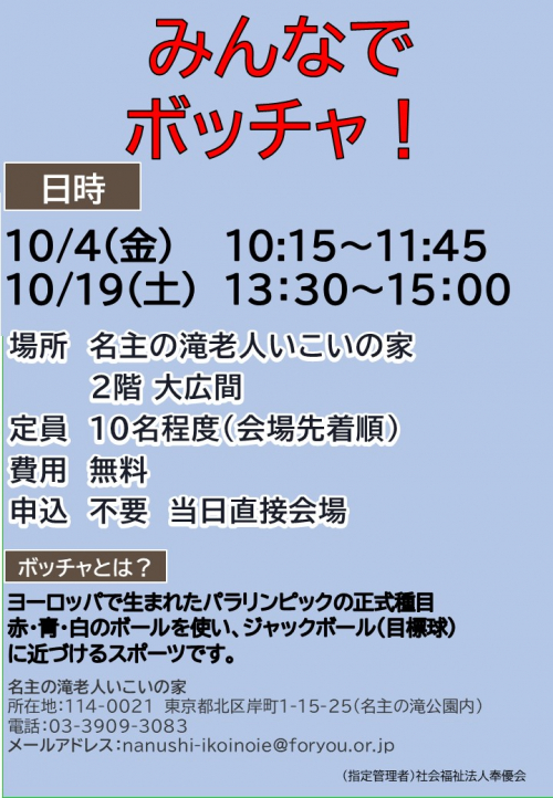 2024.10.01 スマホ講座「LINEの基本」をおこないました 活動報告 2024.10.01 【みんなでe-スポーツ】開催致します お知らせ 2024.10.01 脳の健康度チェック開催致します お知らせ 2024.09.27 館内装飾ボランティア 活動報告 2024.09.26 みんなでボッチャ開催致します お知らせ 2024.09.26 みんなで脳トレ 活動報告 2024.09.26 【申込受付開始】11月『冬の肩こり予防体操』 お知らせ 2024.09.25 きせかえドレス講座の様子② 活動報告 2024.09.25 折り紙の鍋敷き皆様の作品です 活動報告 2024.09.22 ペーパークイリング【秋の風景】申込スタート! お知らせ 2024.09.21 10月小物講座【手芸ボード】申込受付中です お知らせ 2024.09.21 きせかえドレス講座の様子① 活動報告 2024.09.20 SDGsペットボトルキャップでしおり作り① 活動報告 2024.09.20 10月クレヨンアート講座申込スタート! お知らせ 2024.09.20 クレヨンアート【コスモス】① 活動報告 1 … 37 38 39 40 41 … 57