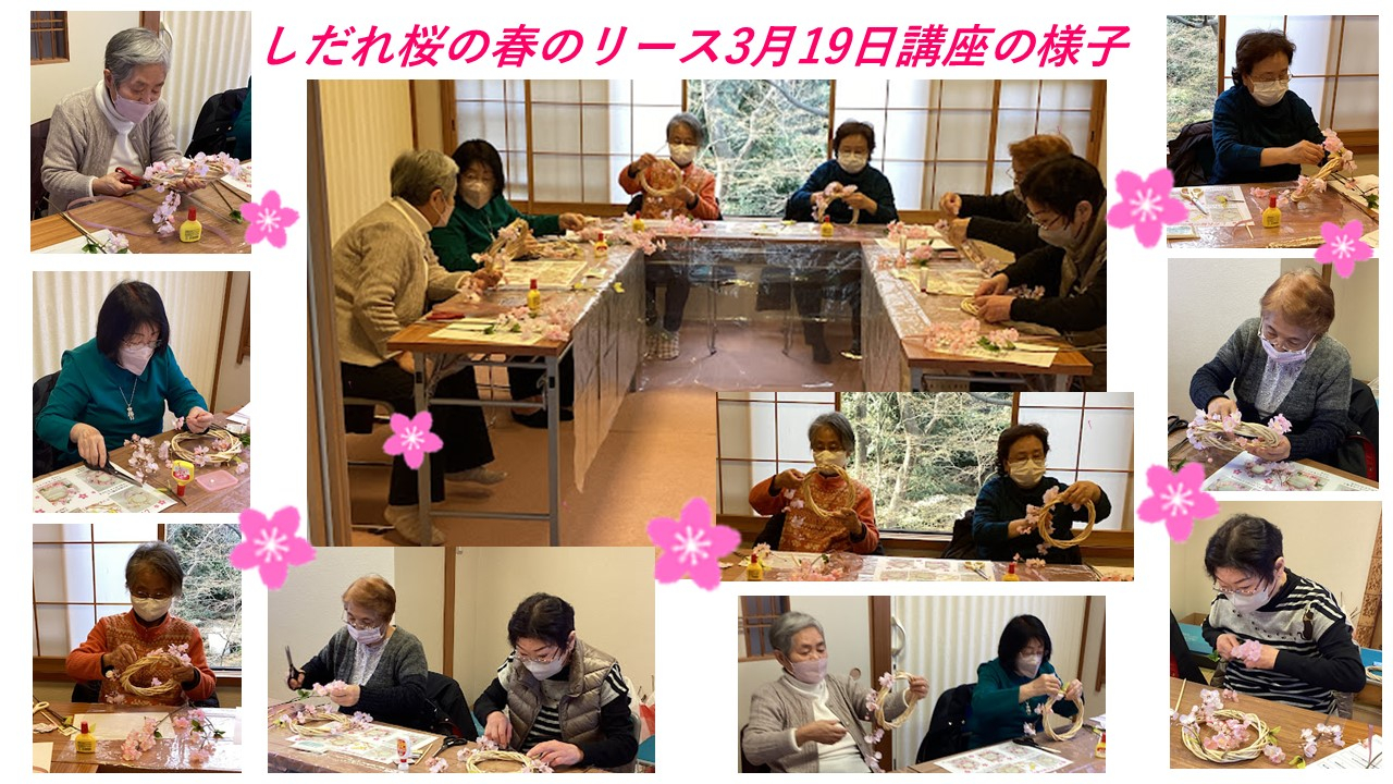 3月19日しだれ桜の春のリースの講座の様子です(*^-^*)